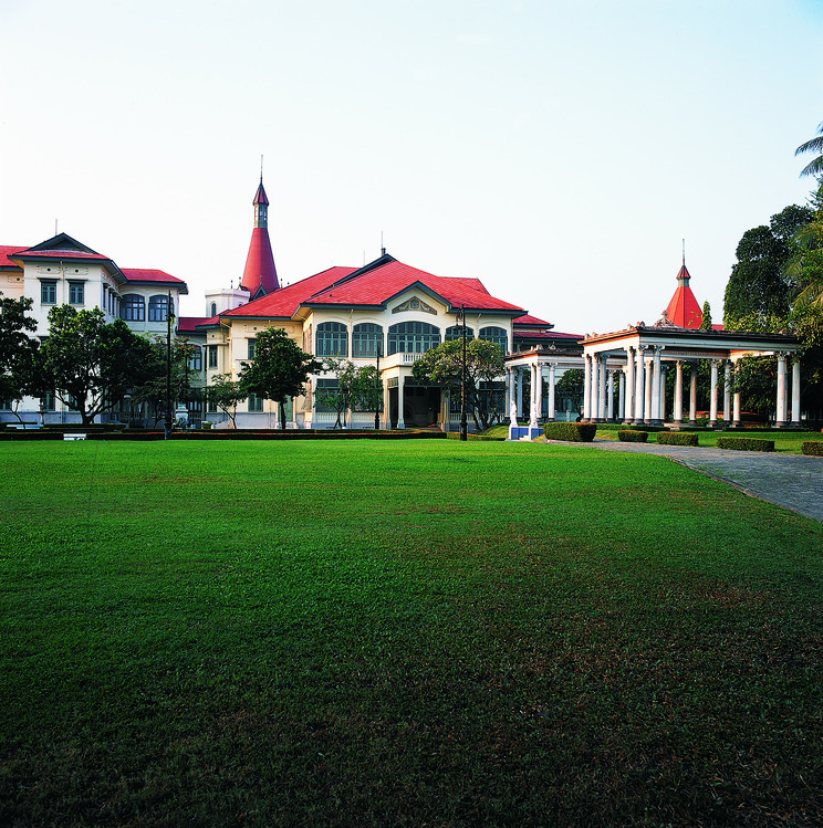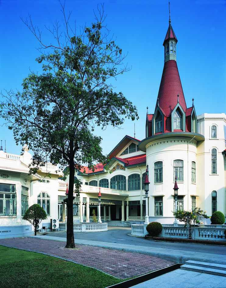 Phayathai Palace was initially built by King Rama V as his countryside resort for his visit to the royal paddy fields in Phayathai area. The buildings in that period were small and simple, as the King considered it a temporary residence. After Rama V passed away in 1910, Queen Si Patcharinthra was so mournful that her health was affected, King Rama VI, her son, thus invited her to stay at Phayathai where she lived and passed away in 1920. Meanwhile, during 1910 – 1922, the King had permanent halls built and when complete he named them, Waikunthephayasathan, Phimanchakri, Sisutthaniwat, Thewaratsapharom, and Undomwanaphon Pavilion where he used as his study as Mekhalaruchie. The architecture of halls are Romantic style designed by European architects, one of them is Mr. Mario Tagmano who designed The waratsapharom Hall. However, designers of other halls are unknown. The halls are decorated with stuccos and woodcarvings. Some halls are with high domed roof. The interiors are decorated with frescos and stuccos. Overall, the palace is picturesque, exciting, extraordinary and elaborate with fine craftsmanship. There is also a historic landscape in the compound, that is, the Roman Garden, which is also in Romantic style. After King Rama VI’s reign, the palace has been rehabilitated as a hotel called “Hotel Phatahai”, a government broadcasting station “PJ 7” and the Pramongkutklao Medicine Center consecutively. It is now known as “Pramongkutklao Hospital”. The halls have been renovated to serve the hospital’s uses.