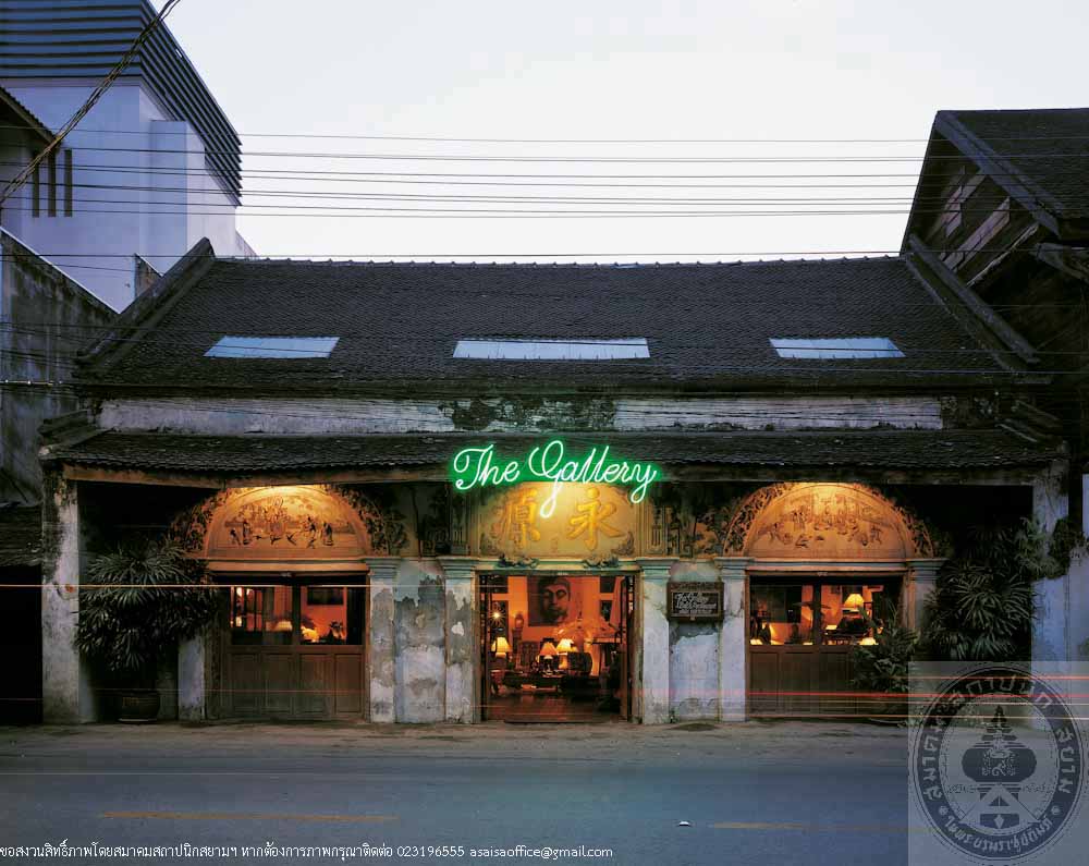 The Gallery is housed in an ancient building dated from 1892 by the grandfather of the present owner and manager, Mr. Surachai Leosawasthiphong. His grandfather was a Chinese immigrant who settled in Chiang Mai and married his grandmother. Then they had a shop house built and sold cotton, silk, as well as household goods. The shop house had been used as a shop as well as a dwelling until 1978, the family moved to a new house.