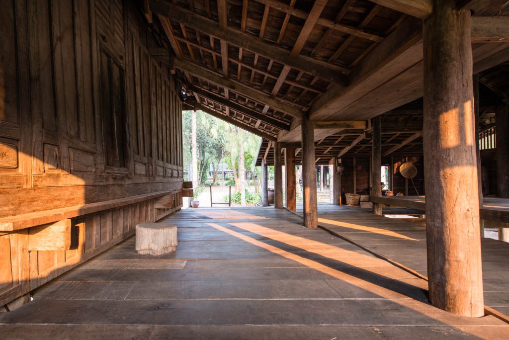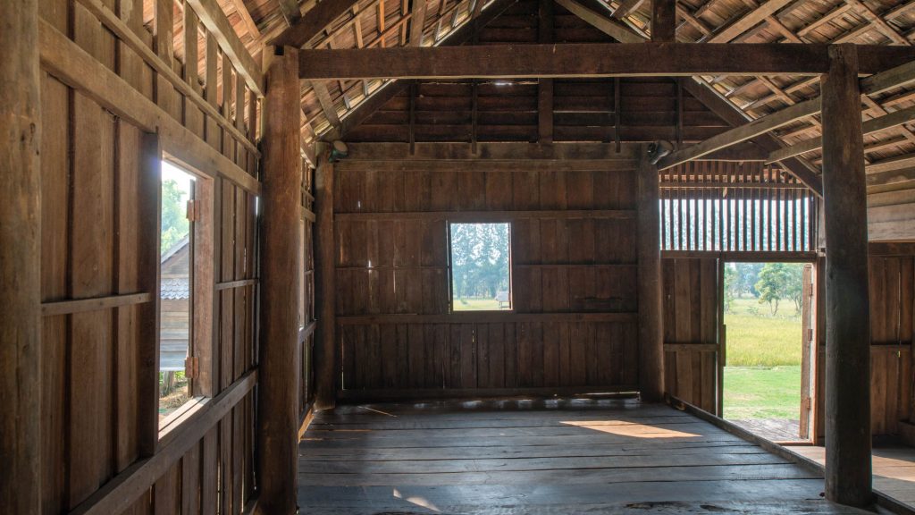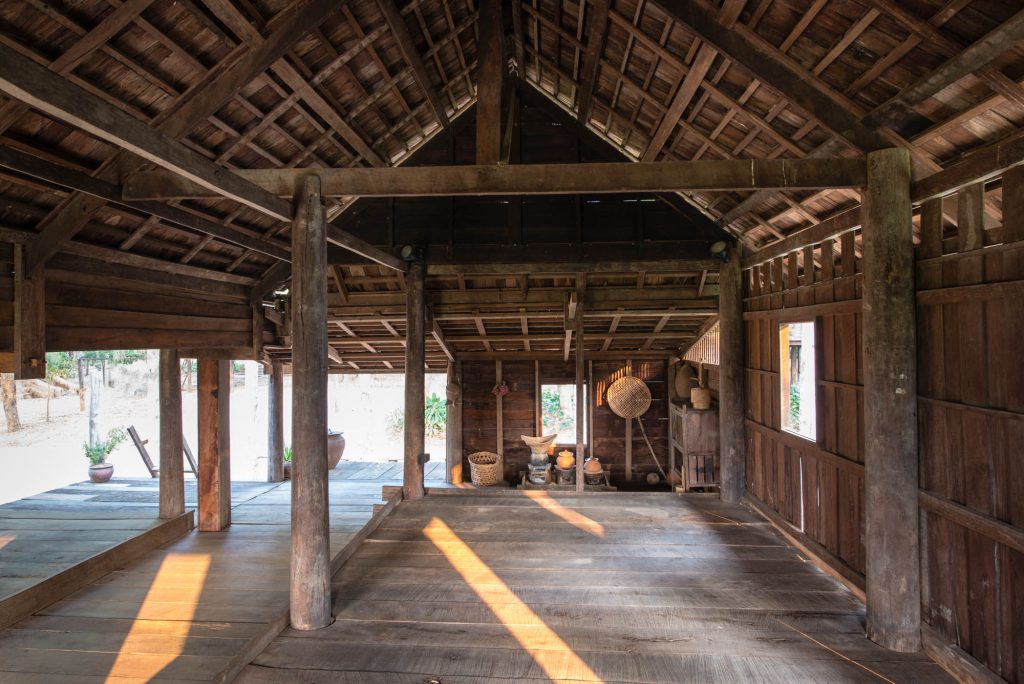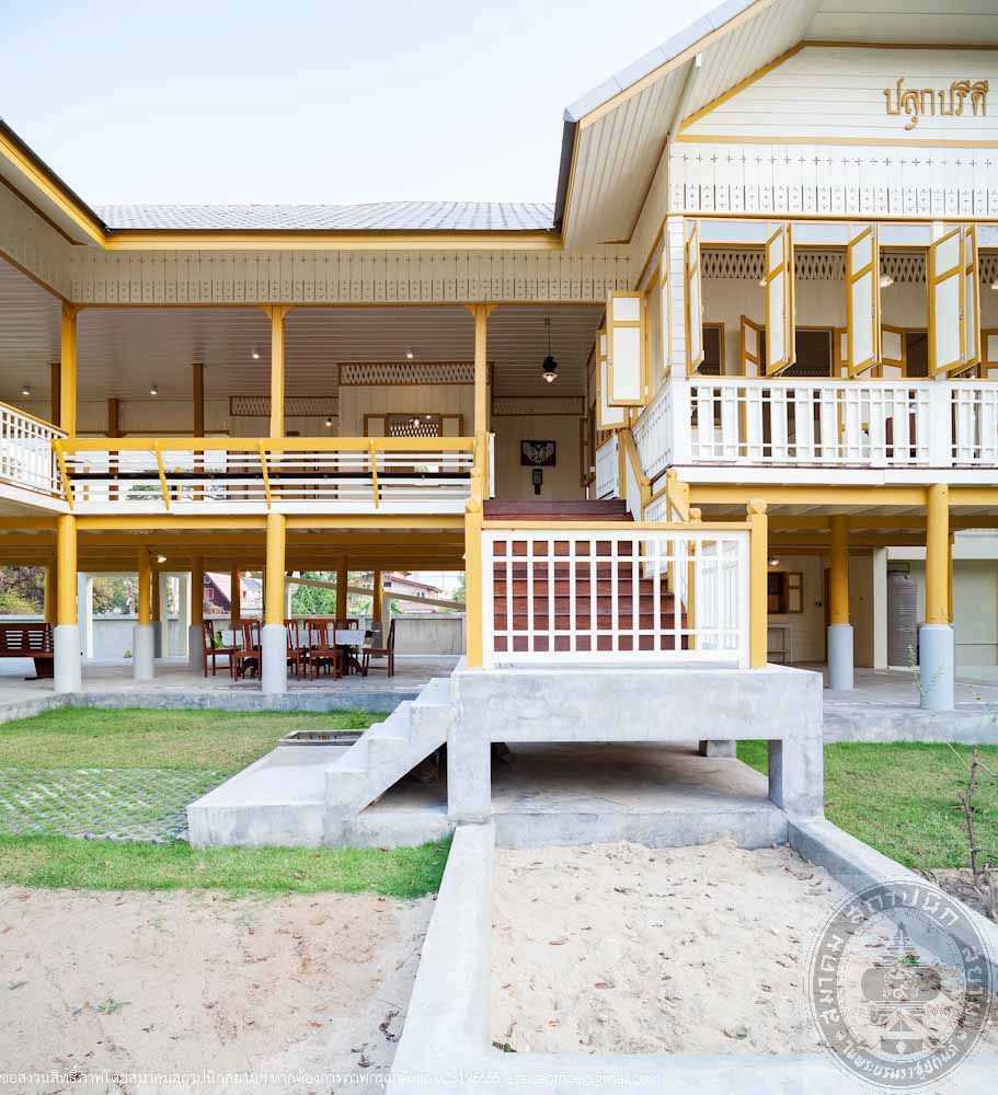 Ruan Nang Peu, formerly located at Ponkrang Sub-district, Muang Nakhon Ratchasima, has been recognized as the master of Korat style houses for a long period of time as it was the most complete and remain in its original shape than the others. The house, built during the reign of King Rama IV, as a primary home of Soi and Ram Sapsoongnern. Their family had been living there until the house was finally passed on to Nang Peu Pengponkrang, the youngest daughter. Nang Peu married Nai Cham Pengponkrang who expanded the house by building an addition on the side. The house later became under the care of Nang Ampon Yodtra, Nang Peu’s daughter. In 2008, the house was relocated to Jim Thomson Farm in Takob Sub-district, Muang Nakhon Ratchasima under the possession of The Thai Silk Company. The farm was established to house collections of northeastern architectures, arts, cultures and traditions in order for the future generations to learn about the valuable heritage of their ancestors.