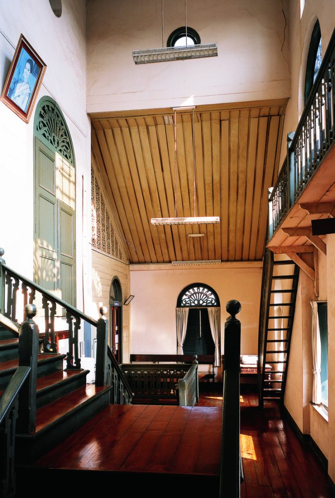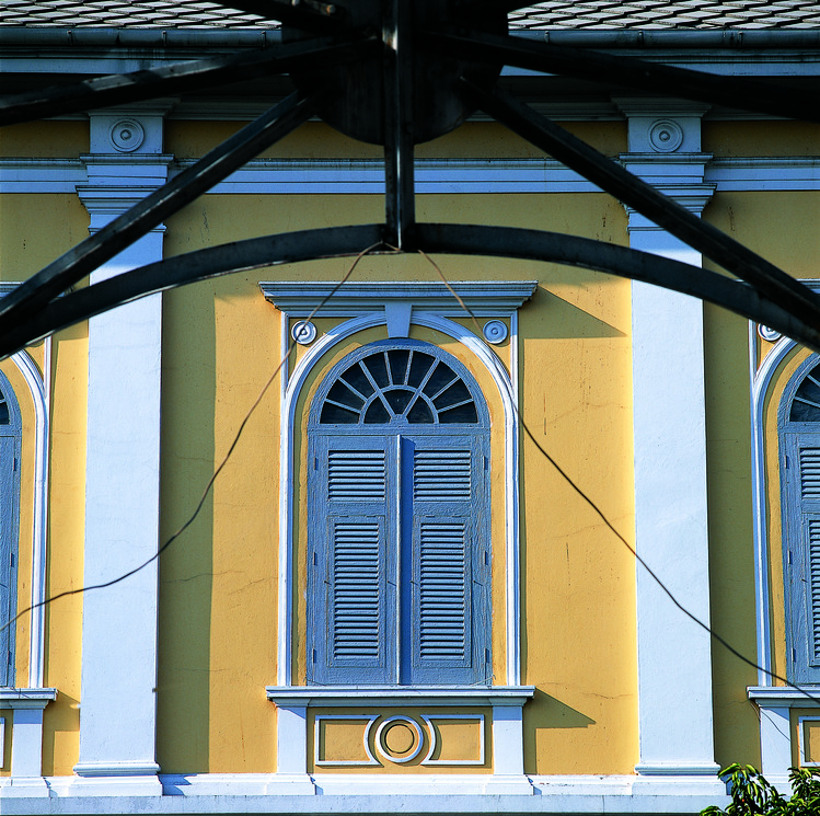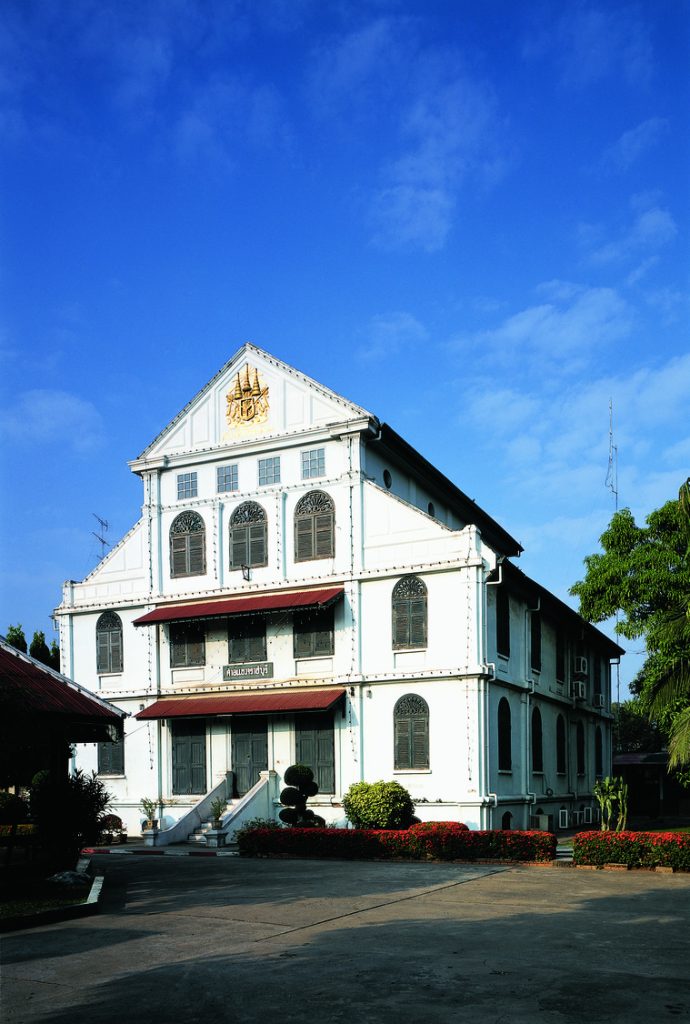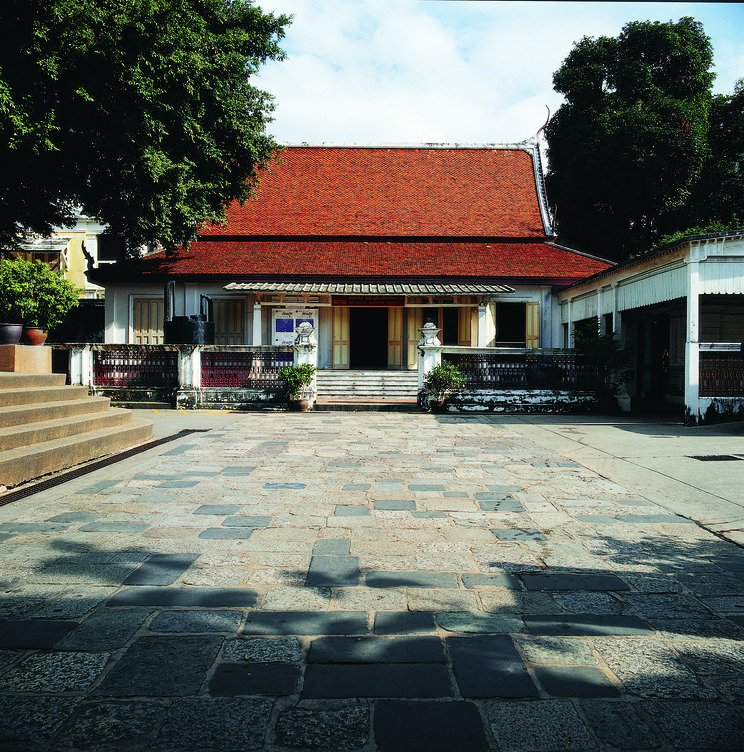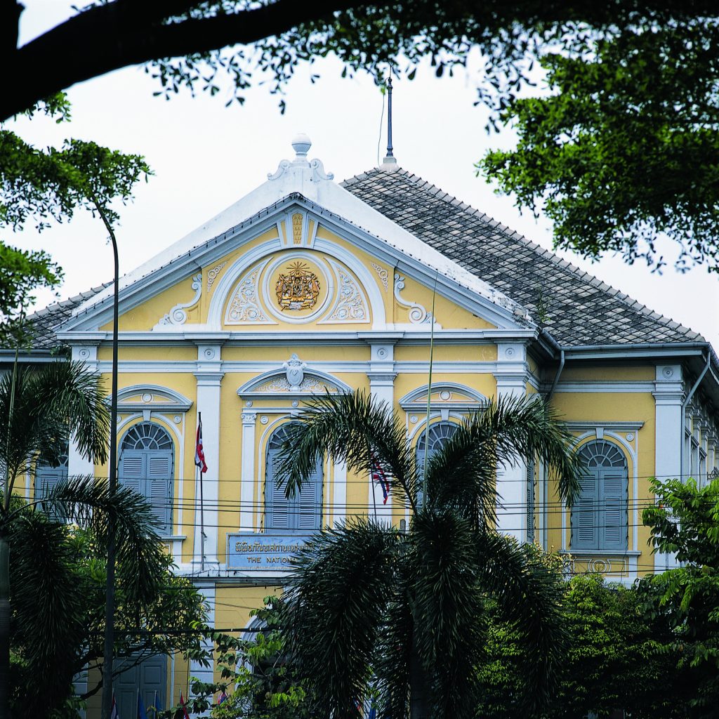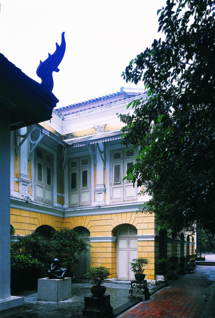 The National Gallery or Thanon Chaofa Art Gallery was originally the royal mint named “Roang Krasap Sitthikan”. It was built circa 1902, the reign of King Rama V, designed by an Italian engineer, Mr. Carlo Allegri, in Neo-Palladian style. The entrance porch is decorated with the Emblem of Thailand in King Rama V period on the pediment. The plan is rectangular surrounding an open court where a water tank, also an original building, with steel structure stands. At first built this mint was very advanced with high technology machines imported from Europe which manufactured coins up to 80,000-100,000 baht per day. The mint was officially opened in 1902 and had operated until it was moved in 1968. In 1974, the property was given to the Fine Arts Department who has it rehabilitated as an art gallery, a suitable function for its space and form. The gallery was opened on 8th August, 1978, presided over by HRH Princess Maha Chakri Sirindhorn.