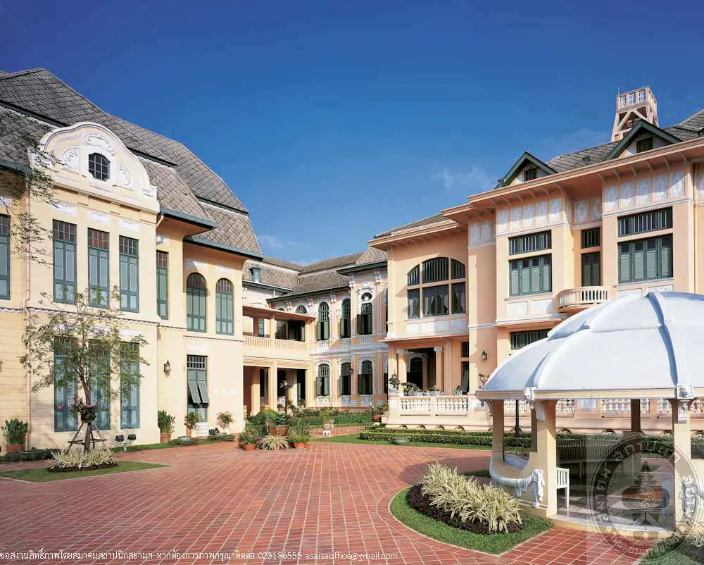 Tamnak Somdet is Jugendstil, or German Art Nouveau stlye designed by Mr. Karl Doring, A German architect. The interior is decorated with moral painting by Mr.Rigoli, an Italian artist. It was built in 1913 as a residence for Queen Sukhumalmarasi, the Prince’s mother
