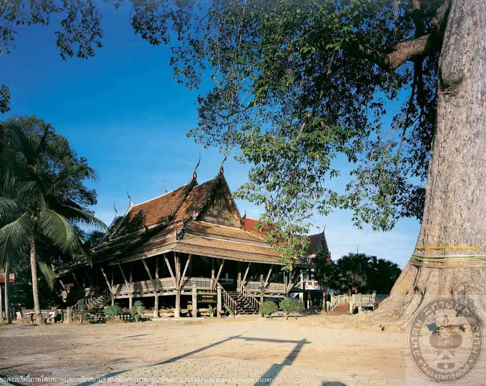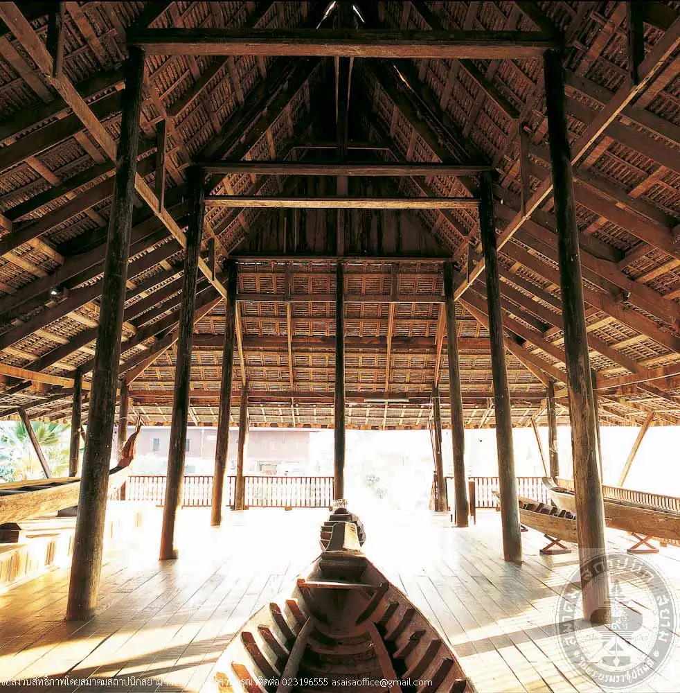 This building was an old Sala Kan Parian (Gathering Hall) that was in a ruinous state. At first, the temple planned to demolished it and replace with a new concrete building, however, the Lop Buri Monument an Environment Conservation Club initiated on conservation of the building. Thus a campaign for funding was raised in 1986, that was well-cooperated and successful. After restoration, the building has been converted as a museum of local boats with exhibition on local ways of life and local boats of various types that are becoming rare.