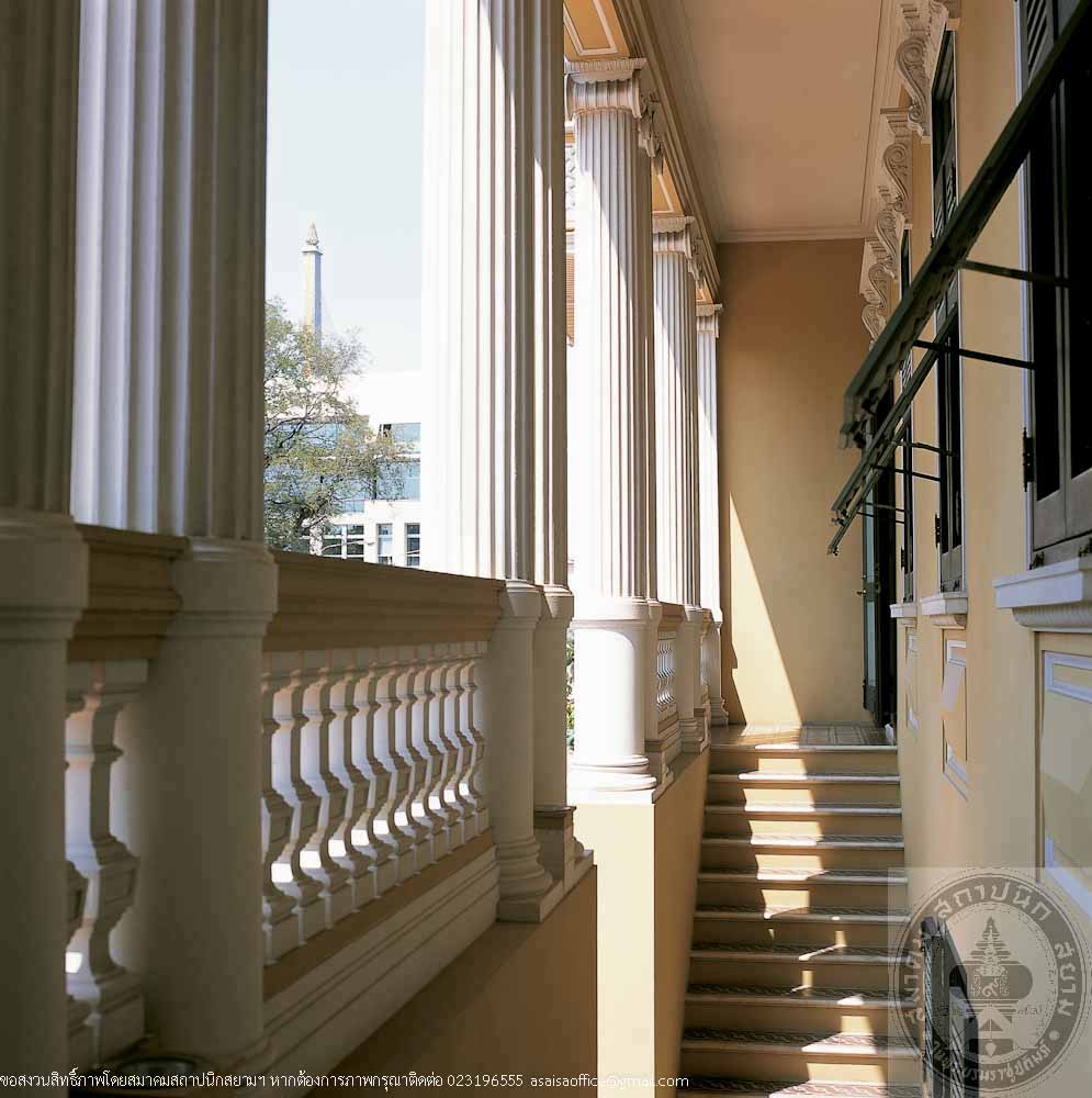 The construction, controlled by Mr. Gollo, was started in August 1917 and completed one year later. Tuek Mom Lamai is a 5-bayed building, 8 x 44 metres, with Neoclassic architecture of Neo Palladian style. The building is 3-storey signified by 3 dormers projected from the roof. The ground floor features mostly solid walls enclosing several rooms inside. The second floor is open and surrounded by balconies with double Ionic columns and stucco balustrades. The third floor has doors leading to balconies surrounded with balustrades as well. The building is large and dignified. However, Mom Lamai did not have an opportunity to live there since she passed away before its completion. Tuek Mom Lamai; therefore, became the residence of her sons and daughters namely, Mom Chao Kandapha, Mom Chao Tisakon, and Mom Chao Surawutthiprawat. After H.R.H. Prince Krommaphraya Thewawongwaropakan’s demise in 1923, Thewawet Palace was inherited to Thewakun heirs. Ministry of Public Health has later purchased the property and converted to the Ministy’s office. Bank of Thailand became the following proprietorand constantly renovated Tuek Mom Lamai, Tamnak Yai and the rest buildings until present.