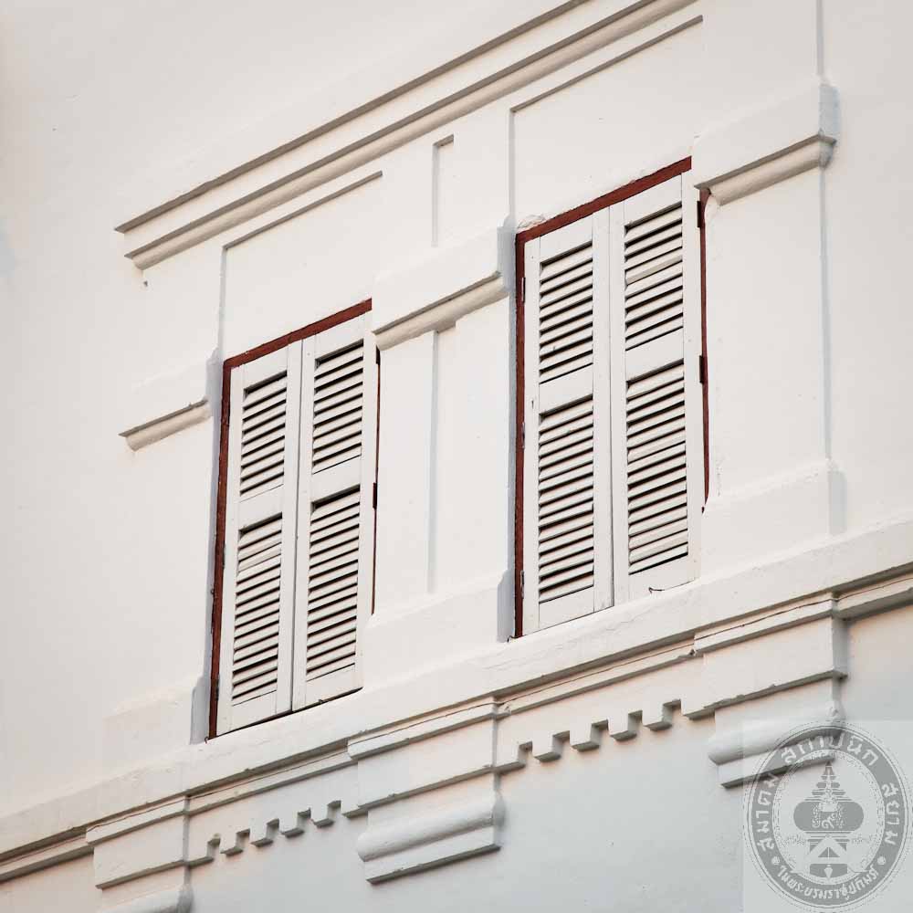 The City Hall was constructed with bricks following the Colonial style and having 3 storey. The front part features a circular form with connected halls. The walls support overall weight hence there exists neither pole nor concrete beam as normally seen in monasteries of the past. Logs were used as a foundation to support the heaviness of the building. With regard to its structure, the floors are all teak wood and the hipped roof with cement tiles. The exteriors of windows and doors in the second and third floors contain louvers while their interiors include clear sliding mirrors. The doors were made of teak wood in a double casement style. There are also translucent glasses above each room’s door to allow penetrating light.