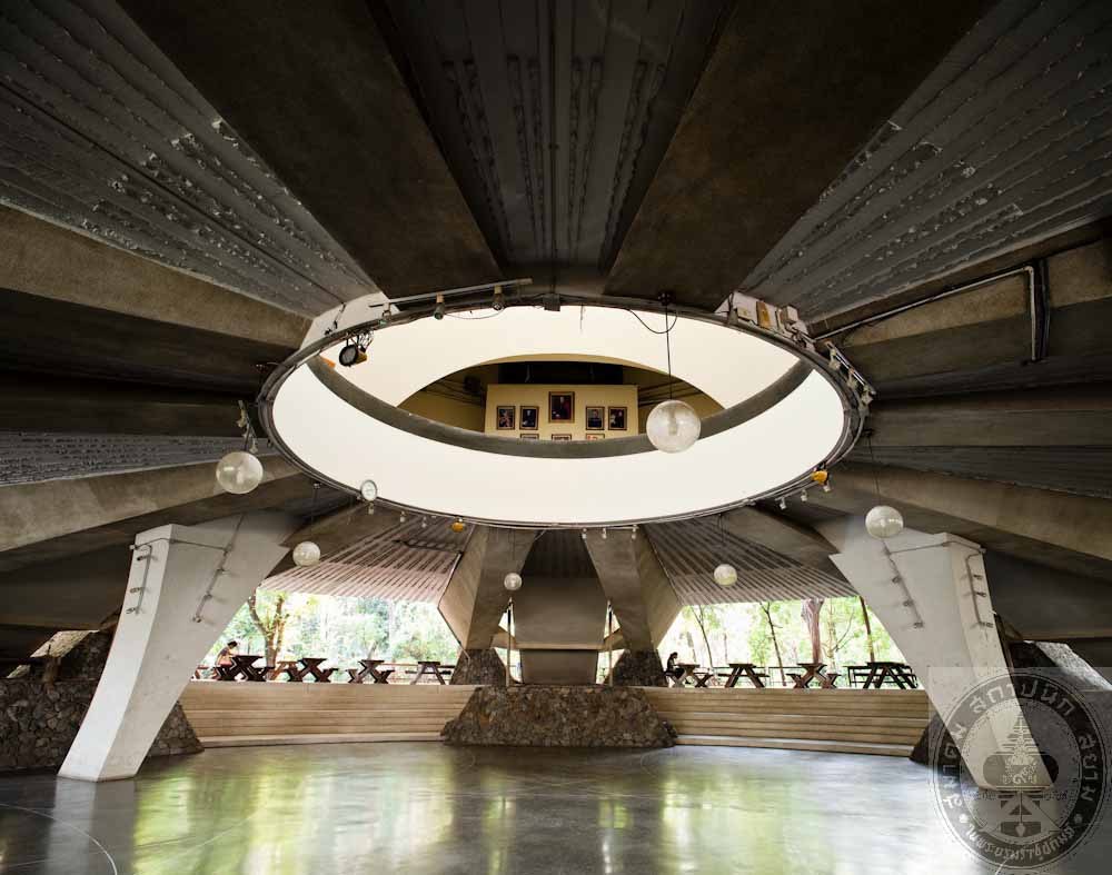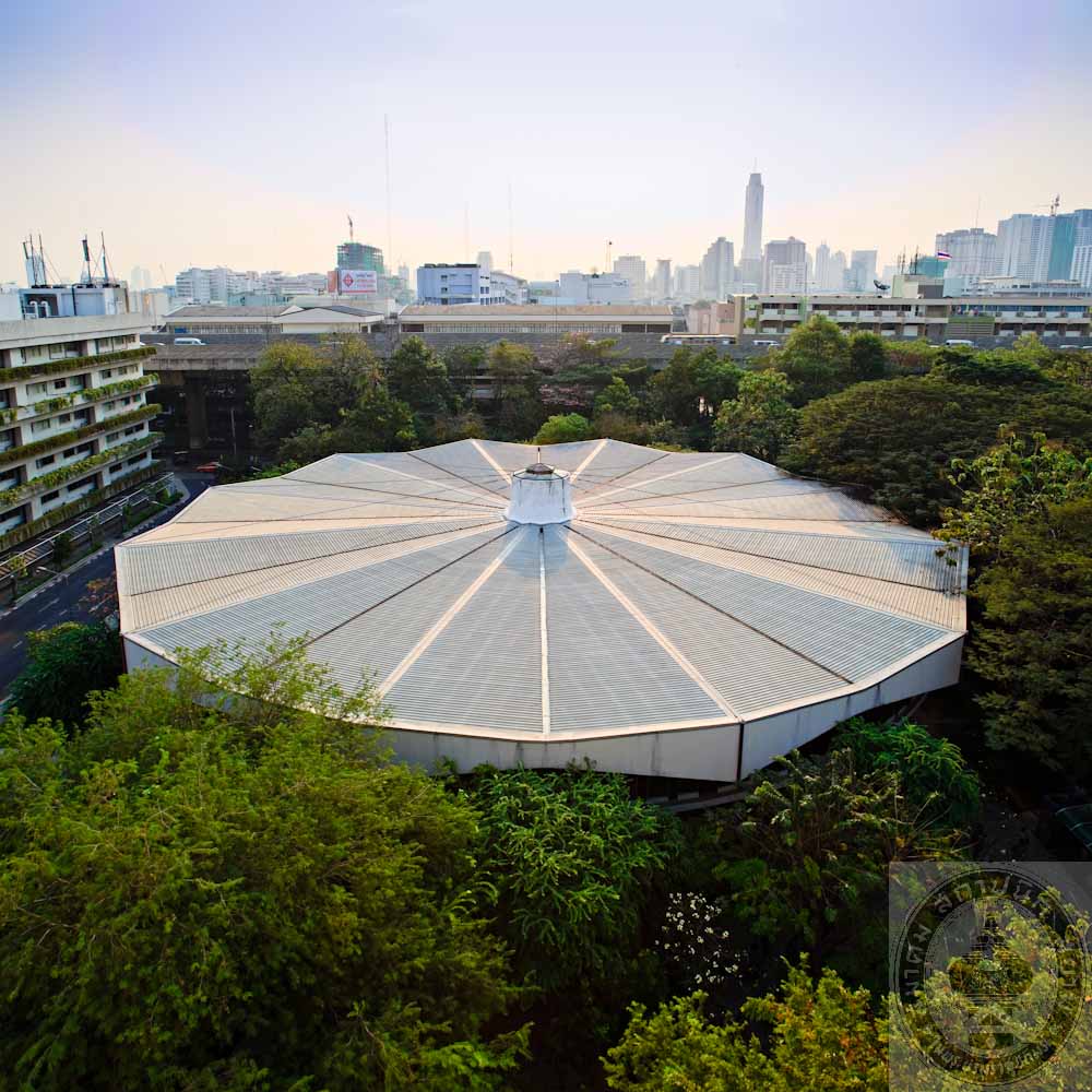 Featuring modern and exceptional architecture, the building has a round shape when viewed from above and resembles a flying saucer if viewed from its side. The concept of this design is to create an open space in which the surroundings can be audible and visible expansively from every part of the building. This lecture building provides 1,500 seats, containing one large 500-seat room and four 250-seat rooms. Furthermore, there is a large hall downstair and an open space around the building. Additional to the intended purpose of lecturing, it also serves for various faculties’ activities such as Wai Kru ceremonies, special speeches and academic conferences.