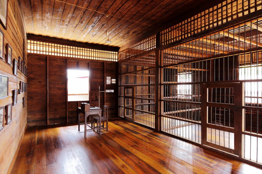อาคารสถานีตำรวจภูธรสวรรคโลก (หลังเก่า) เป็นอาคารเรือนไม้ชั้นเดียวยกพื้นสูง หลังคาทรงปั้นหยามุงกระเบื้องซีเมนต์รูปว่าว มีมุขด้านหน้าเป็นทรงจั่ว บันไดทางขึ้นยื่นออกจากมุขด้านหน้าทั้งสองด้าน โครงสร้างเสาด้านล่างเป็นเสาคอนกรีต ส่วนเสาด้านบนเป็นเสาไม้แดง ฝาผนัง ประตู หน้าต่างใช้ไม้สักทอง ฝ้าเพดานใช้ไม้ตะแบก พื้นที่ใช้สอยชั้นบนที่เป็นโถงโล่งใช้จัดแสดงข้อมูลทางประวัติศาสตร์ของสถานีตำรวจและจังหวัดสวรรคโลก รวมทั้งเครื่องมือเครื่องใช้ในอดีต เช่น เครื่องใช้สำนักงาน เครื่องแบบตำรวจ เครื่องเรือน กำปั่นหรือตู้เซฟที่ใช้เก็บรักษาเงินของส่วนราชการในจังหวัดสวรรคโลก ภาพถ่ายเหตุการณ์และบุคคลสำคัญ เป็นต้น ด้านซ้ายมือของโถงกั้นห้องเพื่อฉายวีดีทัศน์แนะนำประวัติความเป็นมา และวีดีทัศน์เบื้องหลังการทำงานอนุรักษ์สถาปัตยกรรมที่เกิดจากการมีส่วนร่วมของหลายภาคส่วน ด้านขวามือของโถงกั้นห้องเพื่อใช้เป็นที่ทำงานของแผนกงานธุรการสืบสวนและงานธุรการจราจร โดยพื้นที่ด้านหน้าห้องทำงานจัดแสดงการทำประวัติผู้ต้องหา ห้องขังผู้ต้องหาเด็ดขาดซึ่งแบ่งซอยเป็น 2 ห้อง พร้อมจัดแสดงเครื่องมือเครื่องใช้ เช่น กุญแจมือ และไหดินสำหรับให้ผู้ต้องหาใช้ขับถ่าย เป็นต้น บริเวณมุขบันไดด้านหน้าจัดแสดงระฆังที่ใช้ตีบอกเวลา อุปกรณ์ดับเพลิง “หวอ” เตือนภัยที่ใช้ในช่วงสงครามโลกครั้งที่ 2 ส่วนพื้นที่ใต้ถุนปล่อยโล่งและใช้สำหรับกิจกรรมเอนกประสงค์ ด้านหลังอาคารก่อสร้างห้องน้ำเพื่อใช้รับรองผู้มาเยี่ยมชม