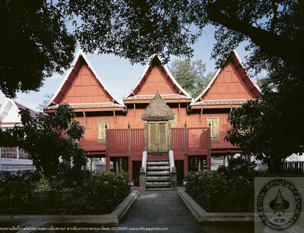 Originally, the hall stood in a pond but later it was filled up thus, at present, the hall stand on ground. The latest restoration was carried out in 1982, on the Bangkok Bicentennial Ceremony.