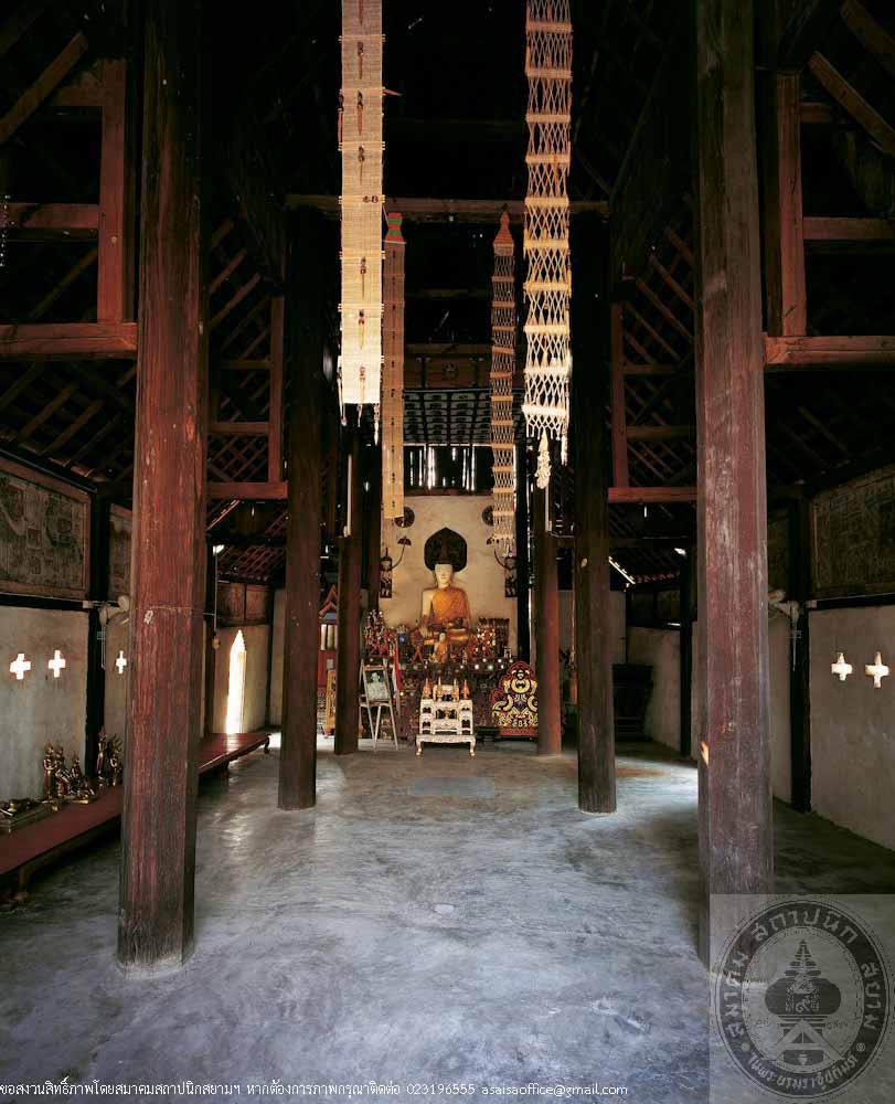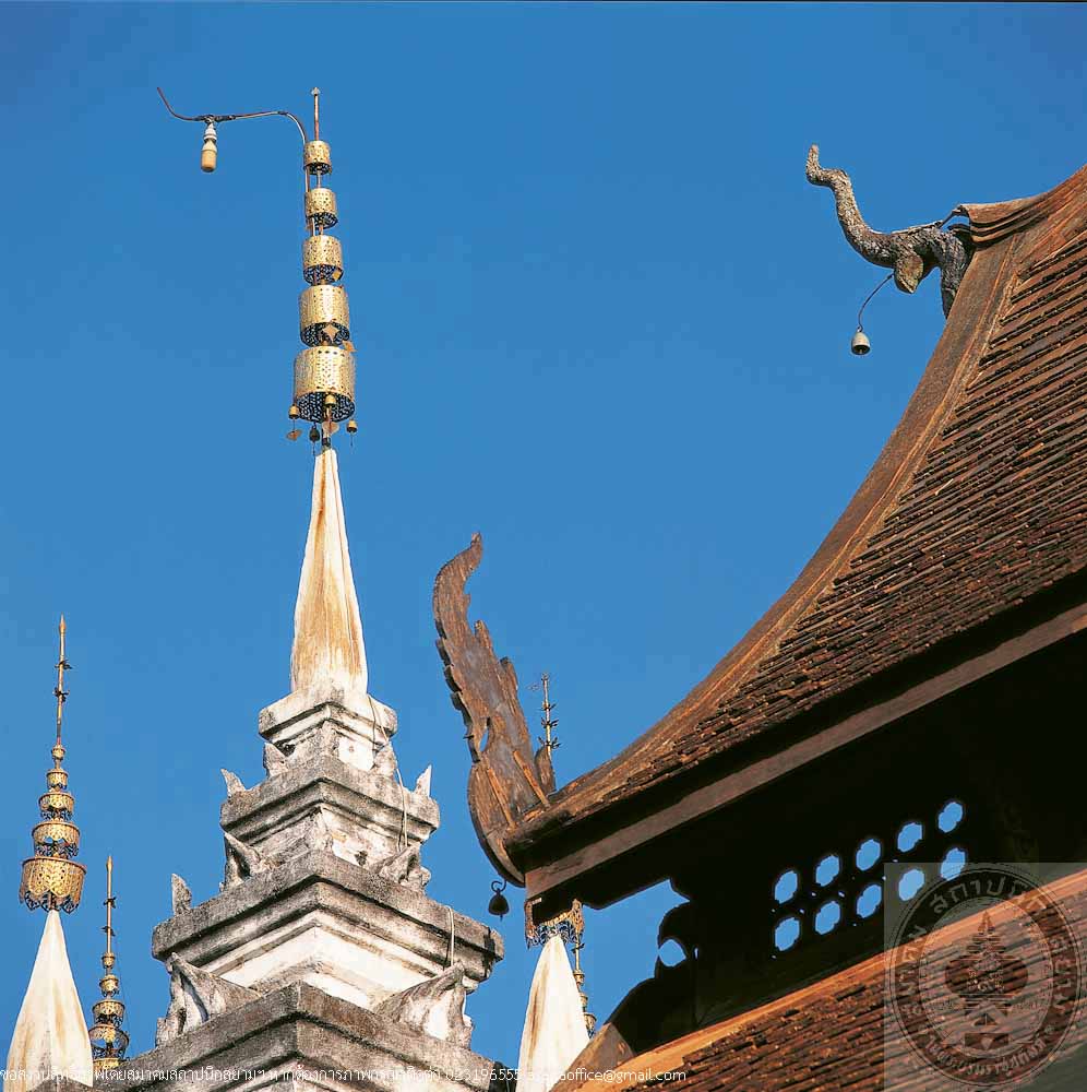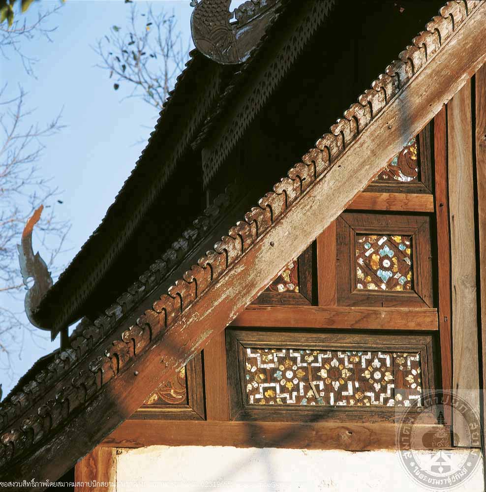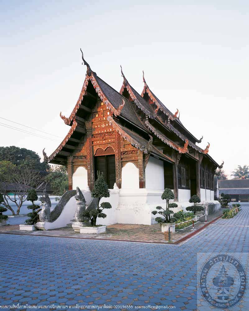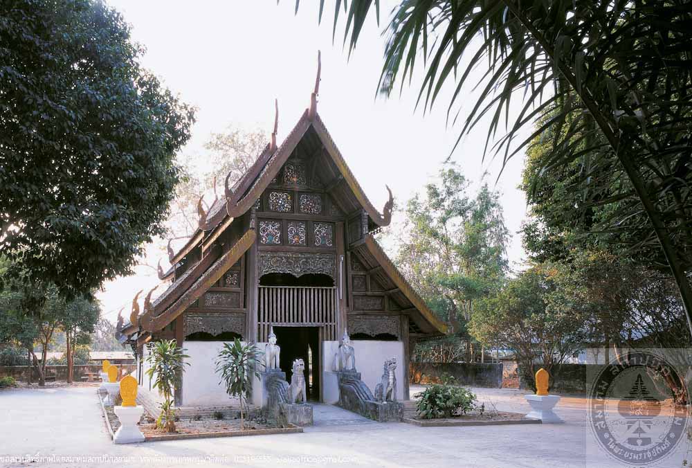 This building is a fine example of Lanna structure characterized by its roof structure which is formed by several timber elements that transfer the load to the pillars systematically. The walls are brick masonry with lime plastering. The interior of the innermost hall is decorated with gilded red lacquer depicting scenes from the life of Buddha.