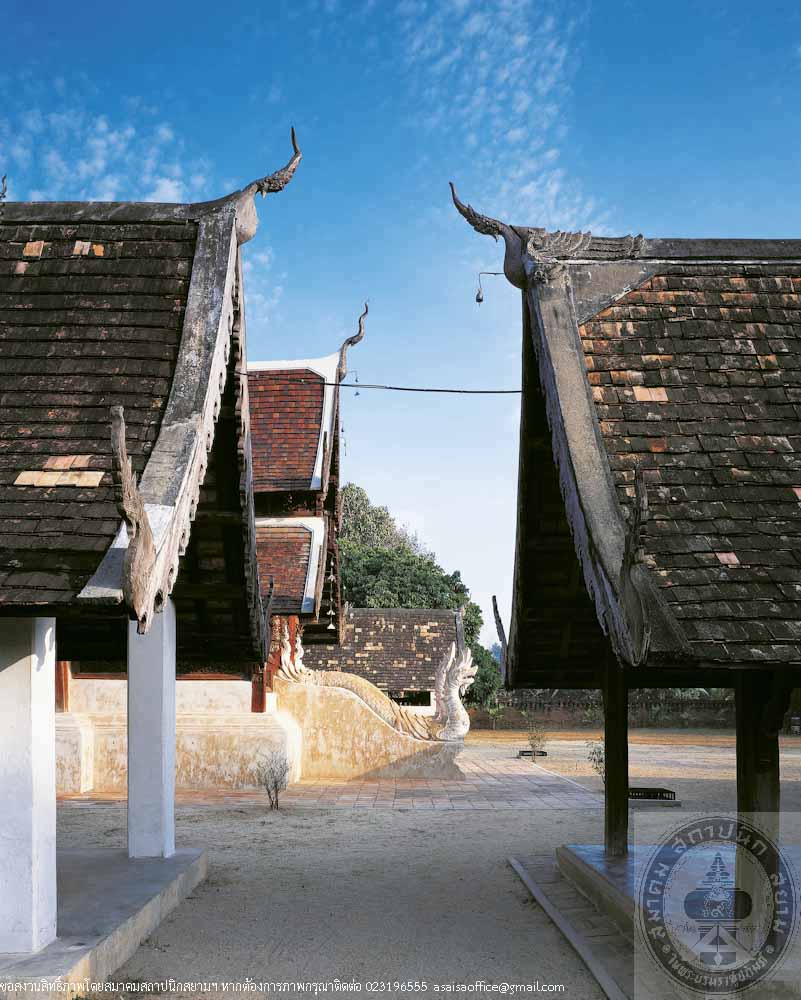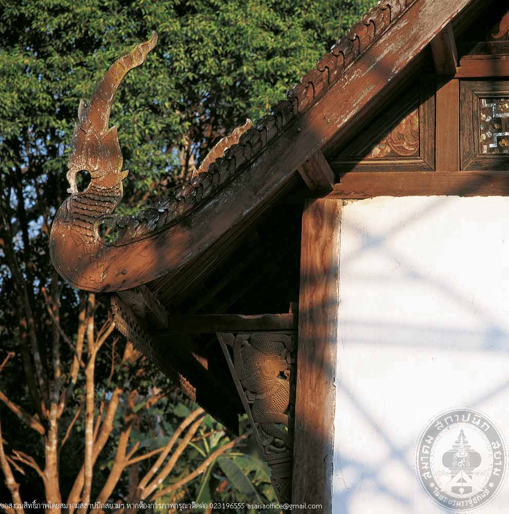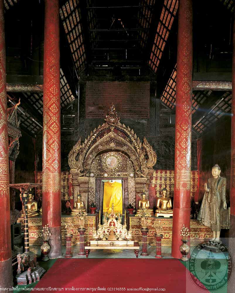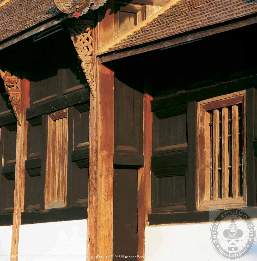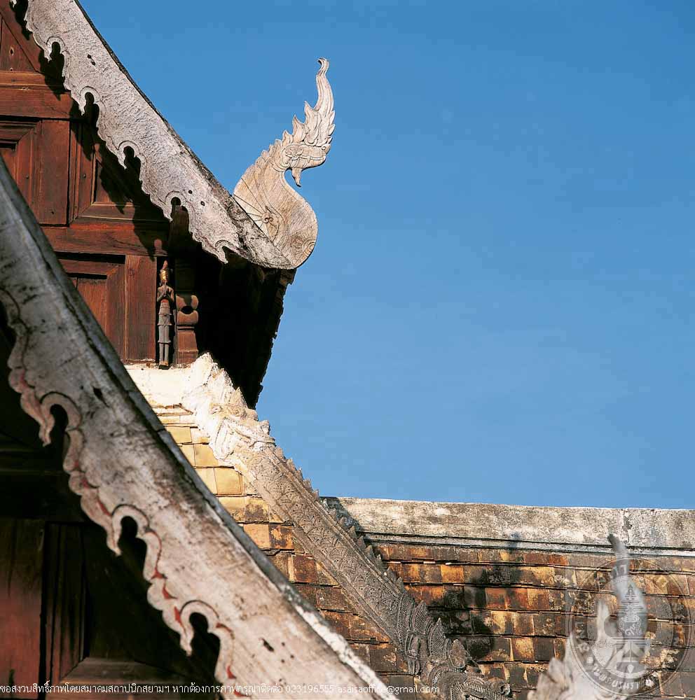 This building is a fine example of Lanna structure characterized by its roof structure which is formed by several timber elements that transfer the load to the pillars systematically. The walls are brick masonry with lime plastering. The interior of the innermost hall is decorated with gilded red lacquer depicting scenes from the life of Buddha.