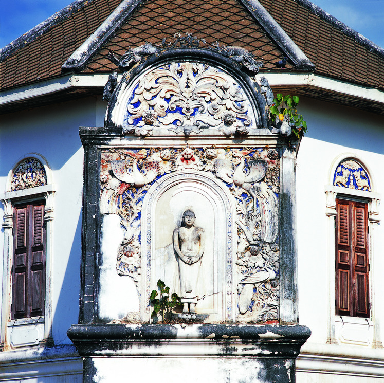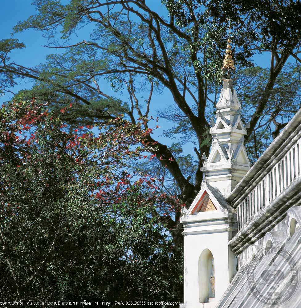 Flanking the Ordination hall to the south is the Grand Vihara, which enshrines a significant Buddha image “Phra Sila” (Stone Buddha), to the north is the Grand Gathering Hal, Both building are the same architectural style as the Ordination Hall. The Pagoda, however, is of Sinhaless style.