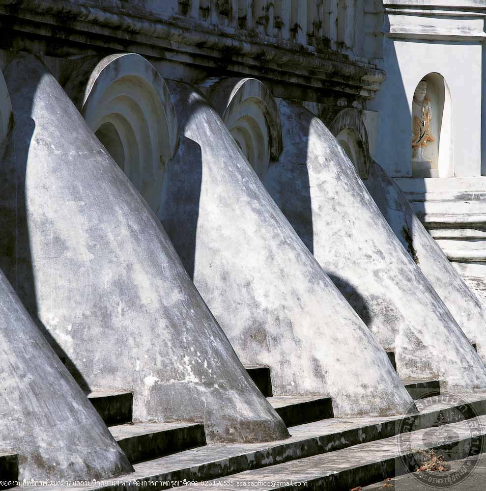 The Mandapa of the Reclining Buddha, Wat Chetawan is a Burmese influenced architecture. Its plan is rectangular comprises 2 tiers of base. Each tier is surrounded by terraces, and sculpture niches on the walls. The mandapa is enshirened with a reclining Buddha of Burmese style.