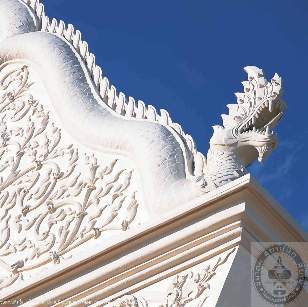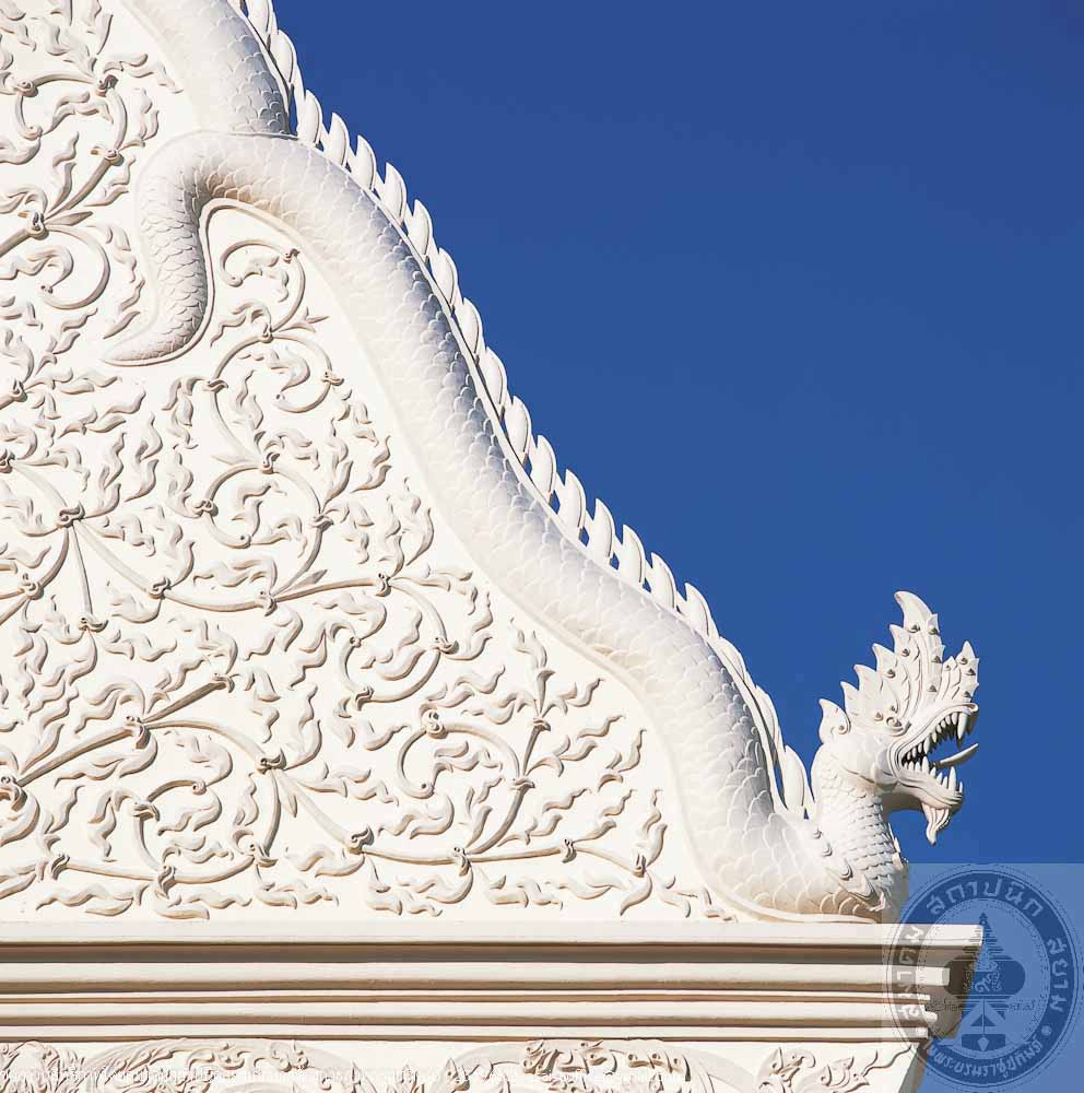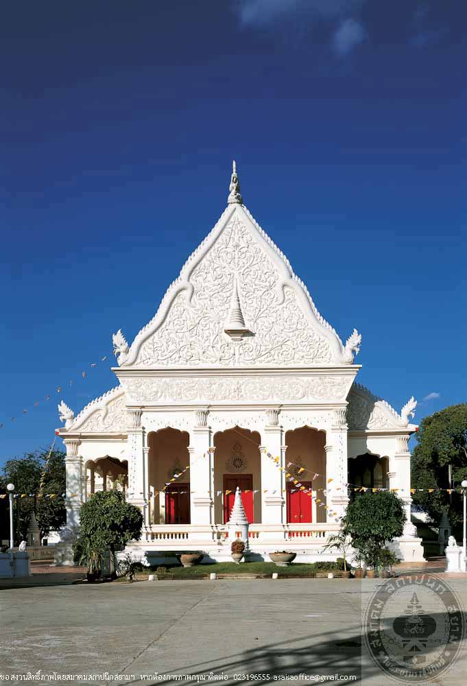 The Ordination Hall is a large structure of 20 metres in width, 34 metres in length, and 22 metres in height. Architectural feature is a combination of Thai, Khmer, and Western style. The Pediment is decorated with stucco depicting a pagoda surrounded by foliage motifs. A significant Buddha’s image, Phra Sapphanyuchao in enshrined in this hall. Other important sacred objects which belong to this temple are the Buddha’s relics and Phra Kaew Khao, for which worshipping ceremony is held every New Year.