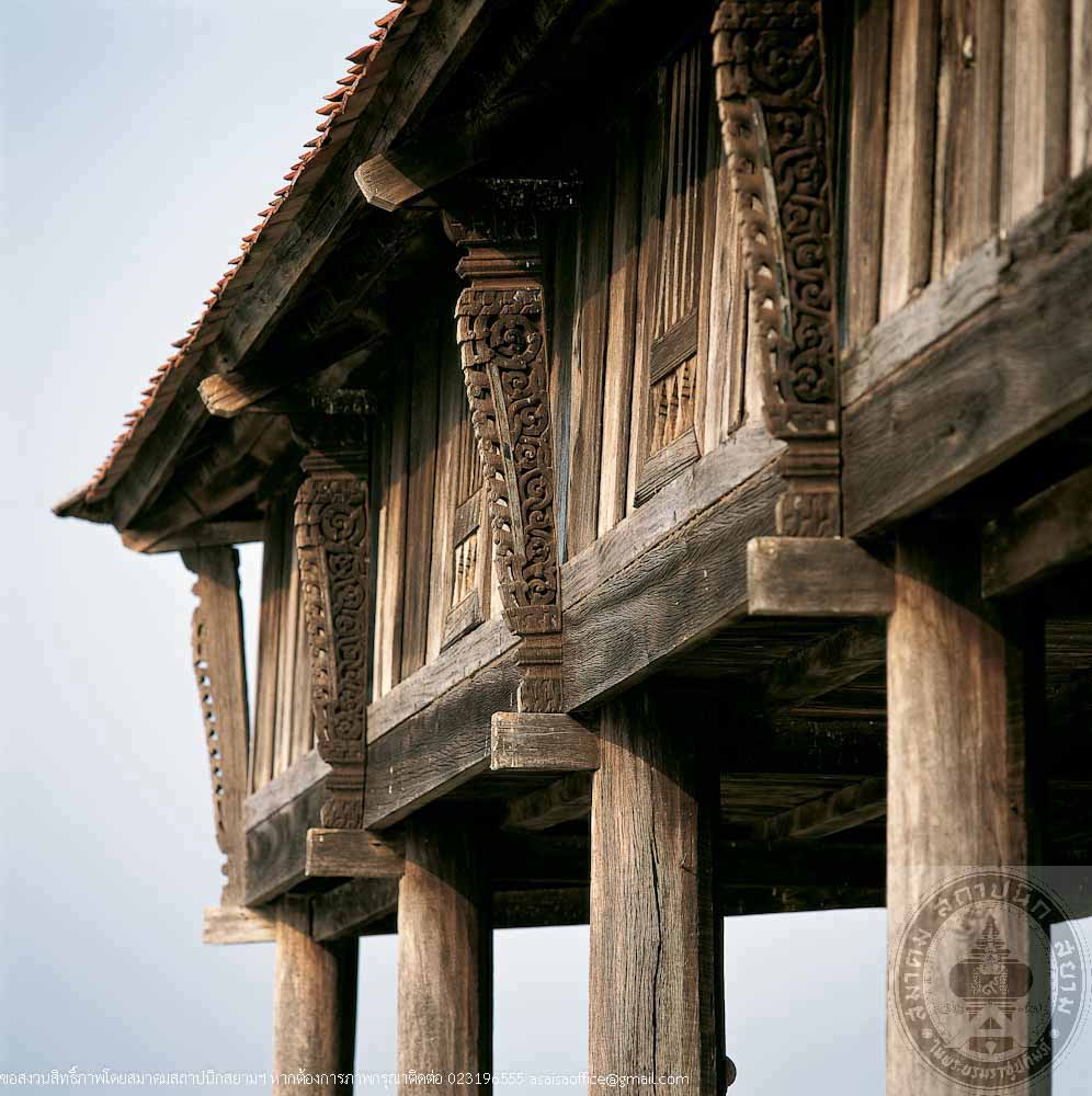 It is a wooden building with raised floor supporting with 25 wooden columns. The gable roof is covered with terracotta tiles. The roof decoration is wood carving in Nagas design. The roof is high and slope downwards. Ho Trai is in a traditional architectural style with beautiful simplicity presenting calmness and harmony. Ho Trai of NongKhu Lu is not only a valuable building of local architecture but also important for preserving Buddhism. It is a special building since it is belonged to the community not the temple
