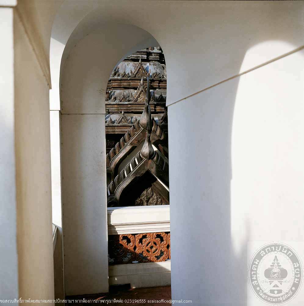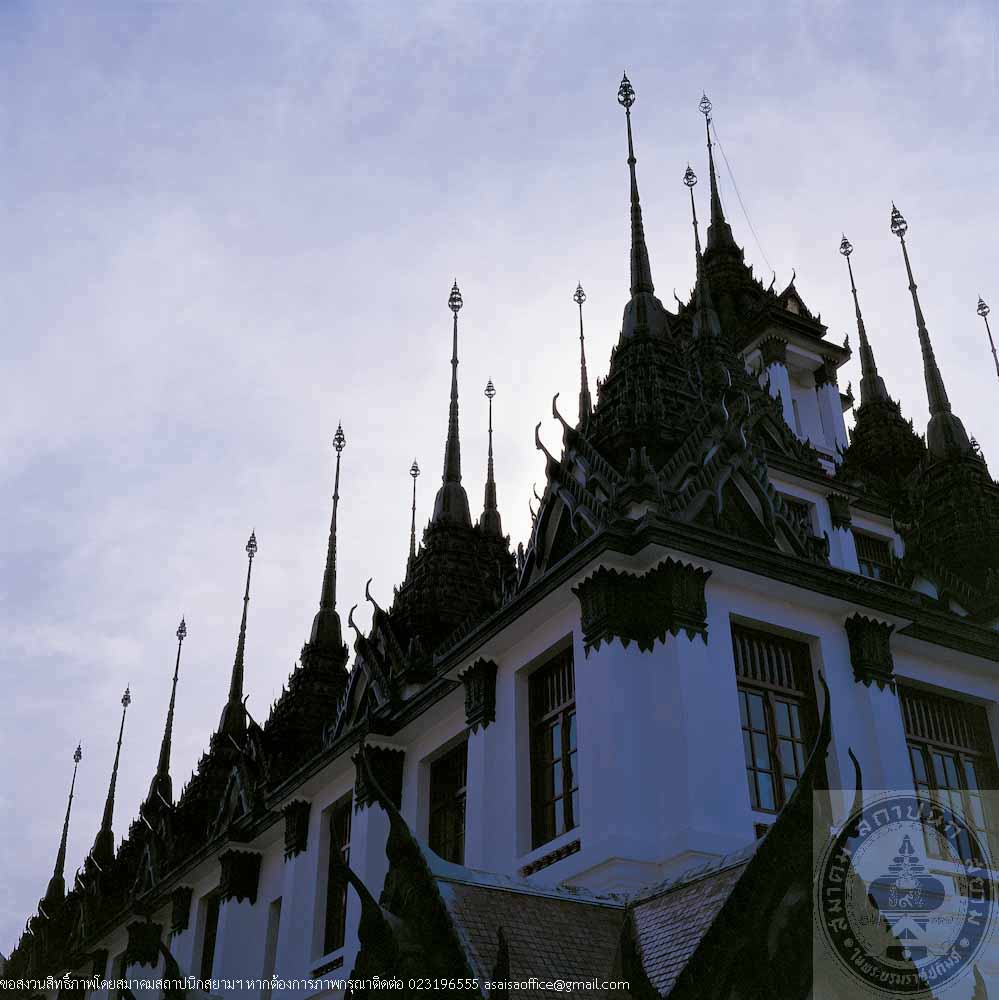 After the event, the latest Lohaprasat Restoration Project was conceived in 1996. The project consisted of restoration and reconstruction works starting from changingthe roofing materials and decorations of central roof spire to metal and black finished copper plates. The working team comprised Group Captain ArvuthNgoenchuklin, National Artist, project architect; Mr. Suthin Charoensawat, civil engineer; Mr. Praphit Kaeosuriya, foreman. The projects progressed continuously until all the spires have been replaced by black finished metal which is appropriate for the name “Lohaprasat” (“loha” means metal).