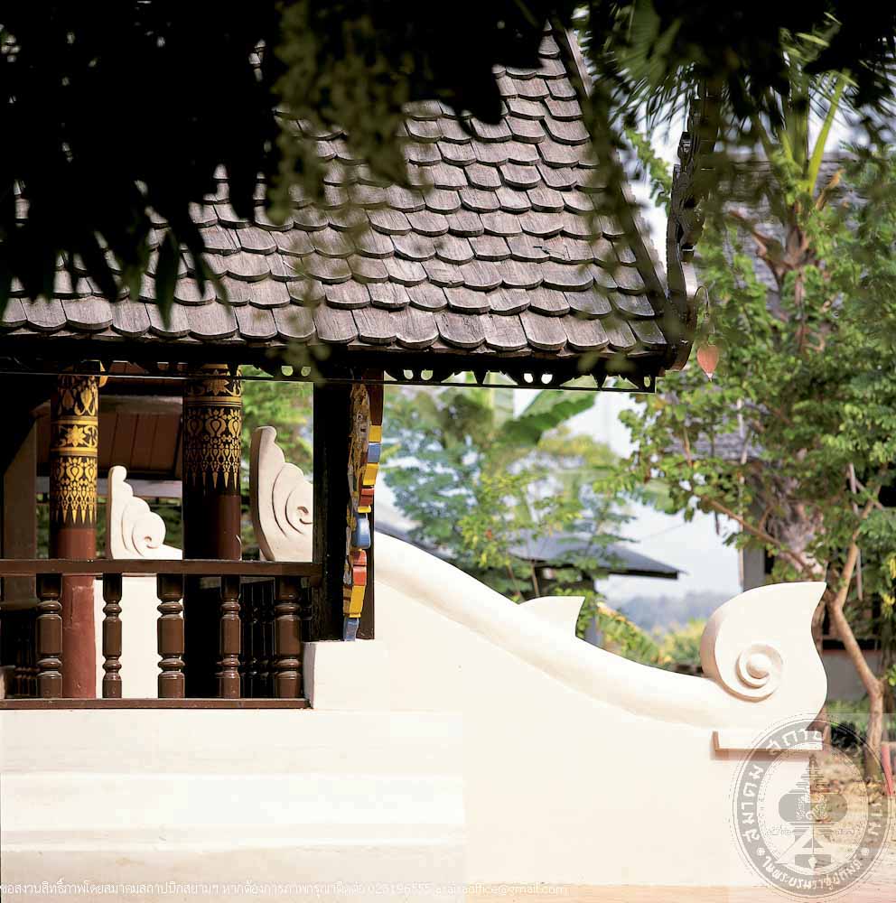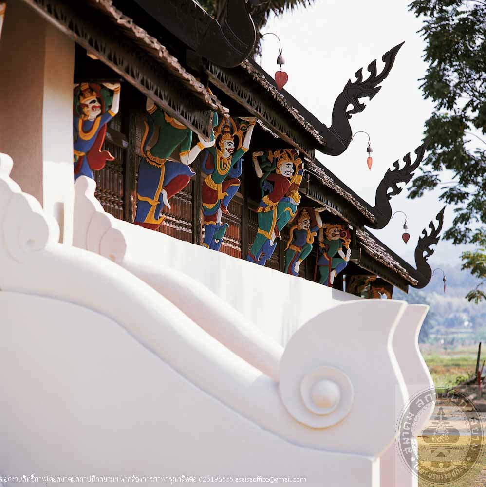 The architecture of Vihara (The Assembly Hall) of Rong Ngae temple is vernacular style of Nan crafts. With 3-tiered, 2-planed roofs, finished with wooden tiles (Pan Kled). Remarkable feature of the building is the adornment which comprises wood carvings in foliage designs on gable panels; and elephant ears shape corbel carved in shape of deities, demons and humans.
