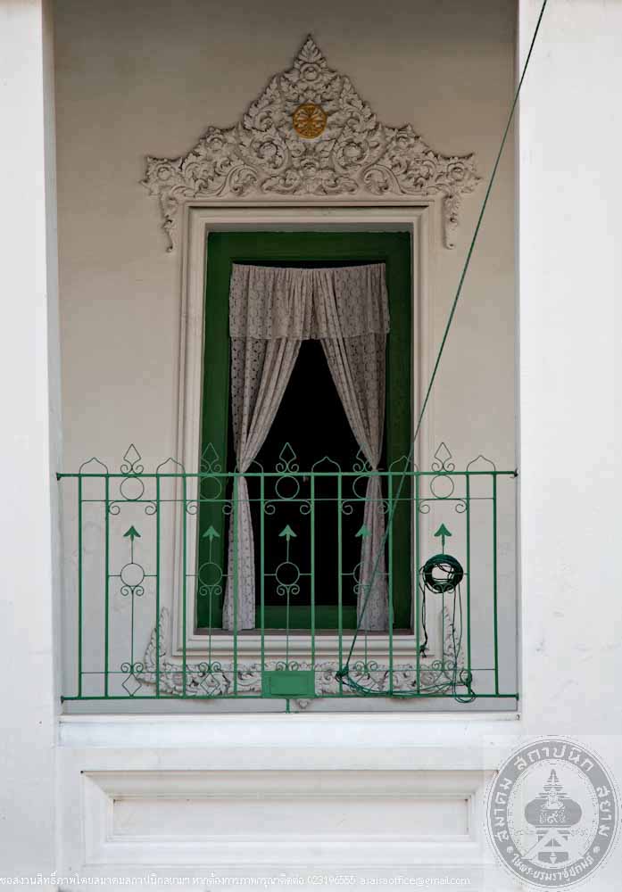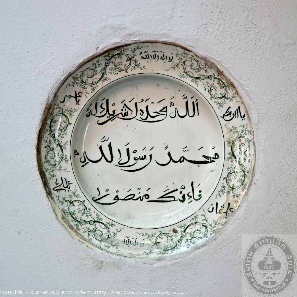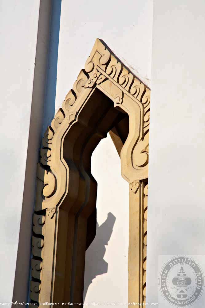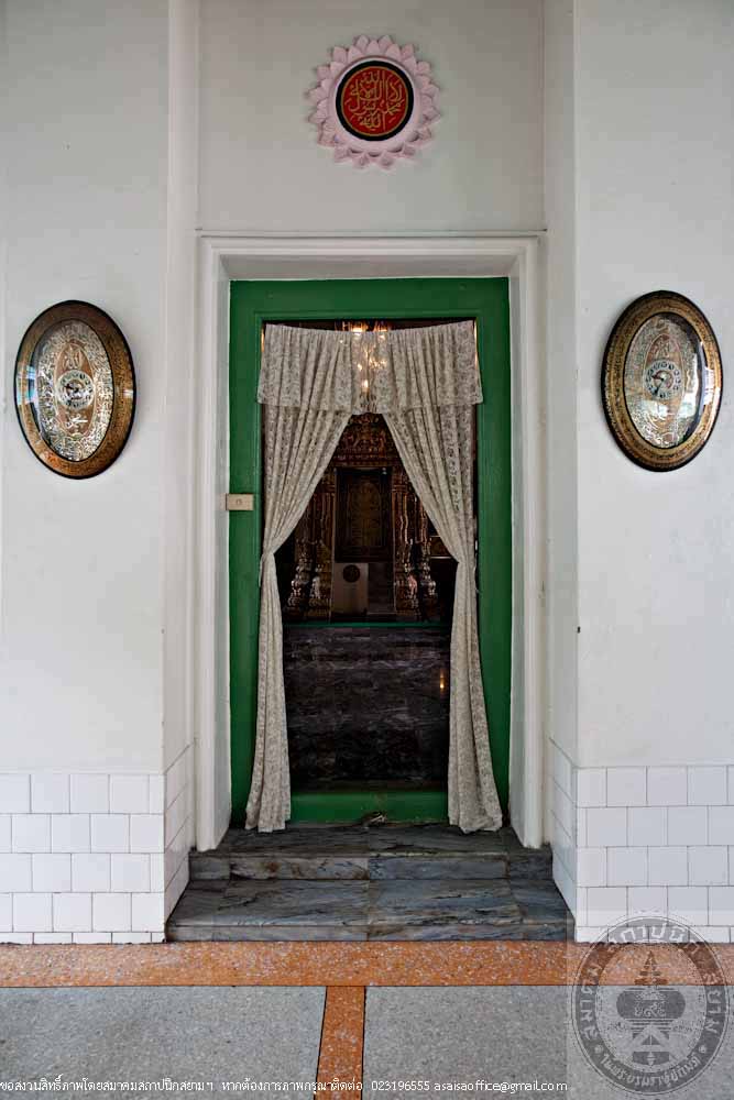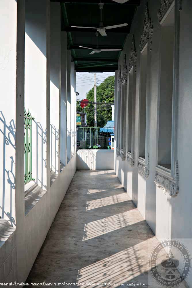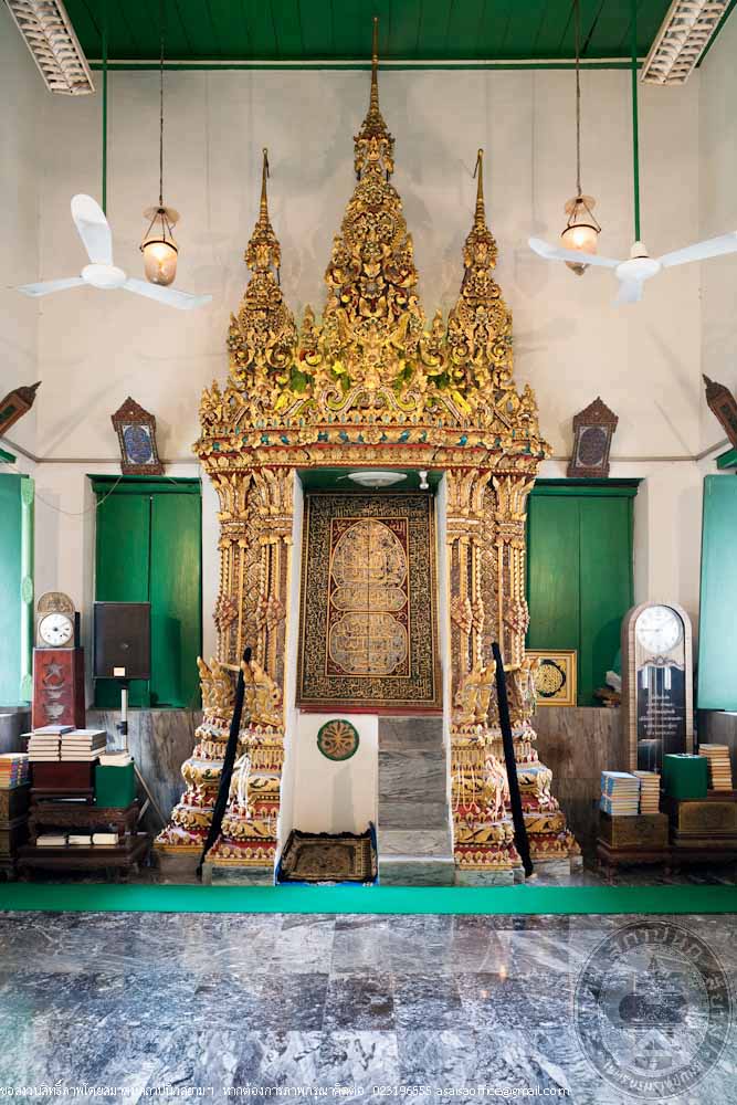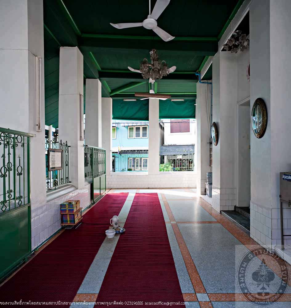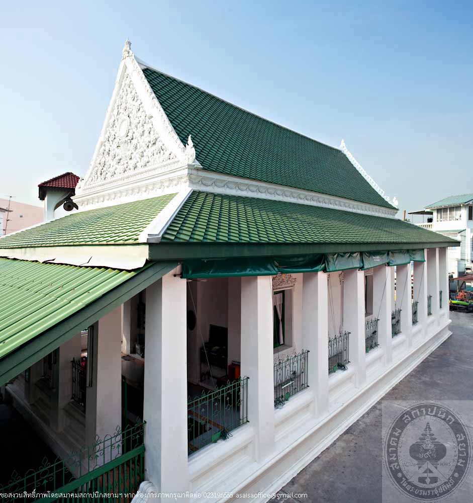 The rectangular building is 12 metres long, 24 metres wide and 16 metres high made of masonry brick in traditional Thai style. The gables are decorated with stucco of tri-ethnic artworks: the traditional motif lining the gable frame, the western foliage motif on the gable panel and the flowers in Chinese floral patterns. The stairs in the North and South lead to the gallery surrounding the prayer room. Inside the prayer room, there is the podium for preaching.