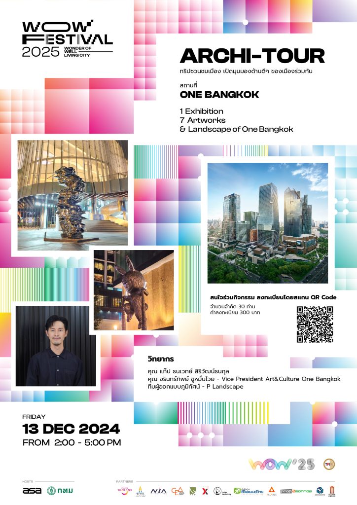 เปิดประสบการณ์ กับ”Archi-Tour” ชมงาน Art จากศิลปินระดับโลก ที่ติดตั้ง ในโครงการ Mega project “One Bangkok” ร่วมทัวร์และฟังบรรยายกับศิลปิน influencer “คุณแก๊ป ธนเวช” และวิทยากรผู้ดูแลและออกแบบโครงการ