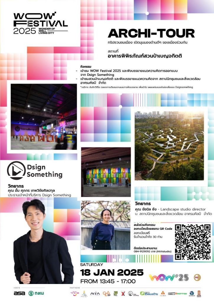 หนึ่งในกิจกรรมของ WOW Festival 2025 งานเทศกาลที่จะเปิดโลกการออกแบบและสร้าง “เมืองดี คนมีพลัง” ผ่านกิจกรรมที่รวมทุกไอเดียสร้างสรรค์ไว้ในที่เดียว กับหลากหลายกิจกรรมไฮไลต์ ที่รวมตัวผู้เชี่ยวชาญด้านการออกแบบ สถาปัตยกรรม และการสร้างเมืองยั่งยืน พร้อมเปิดโอกาสให้ทุกคนได้เรียนรู้และสัมผัสประสบการณ์จริงในทุกมิติของการออกแบบเมือง