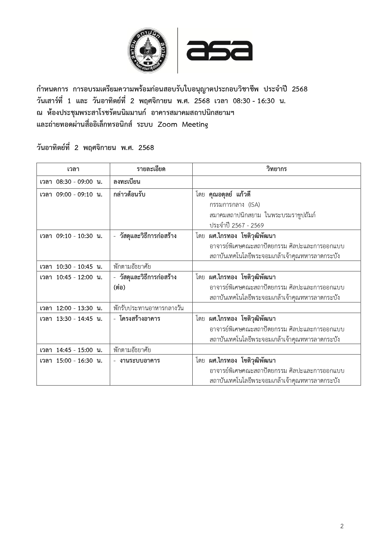 2568-11-01-02 กำหนดการอบรมสถาปนิกใหม่ 68 (Edit 680901)_page-0002