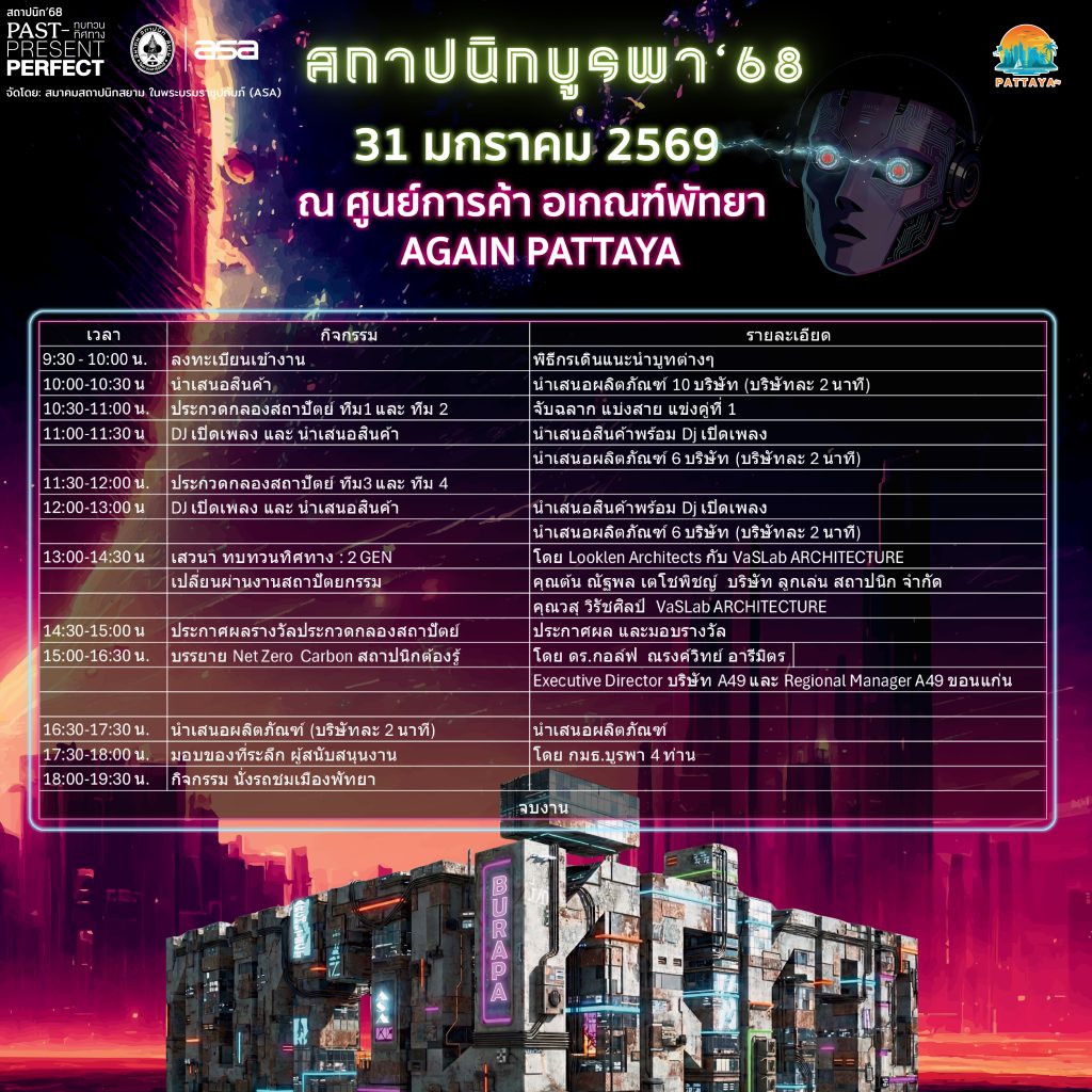 งานสถาปนิกบูรพา’68 + Add to Google Calendar + iCal / Outlook export Date Jan 30 - 31 2026 Expired! Time 08:00 - 18:00 More Info More Information Share this event