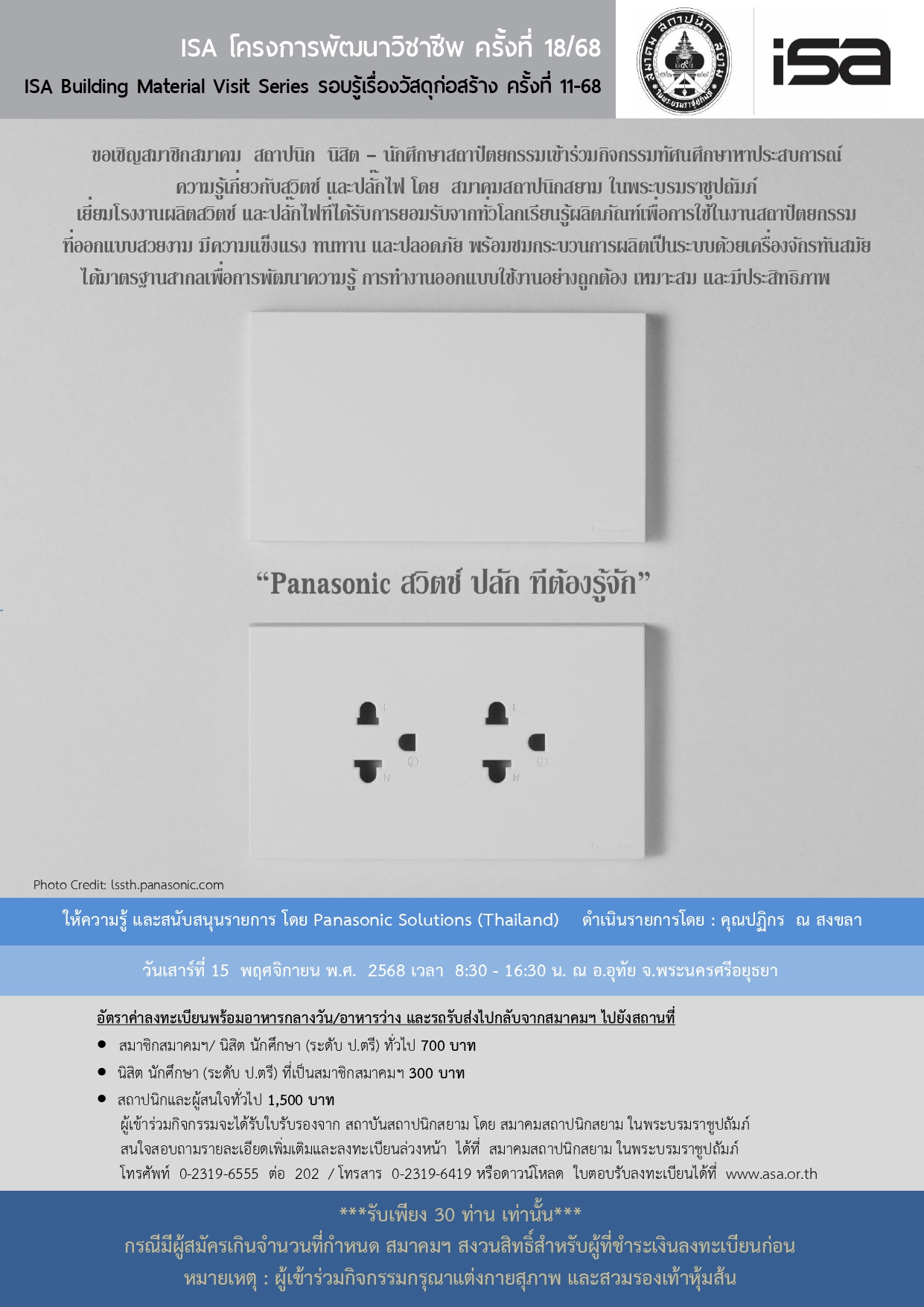 ISA โครงการพัฒนาวิชาชีพ ครั้งที่ 18/68 : Panasonic สวิตช์ ปลั๊ก ที่ต้องรู้จัก