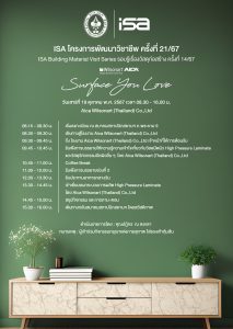 ISA โครงการพัฒนาวิชาชีพ ครั้งที่ 21/67 : “Wilsonart Surface You Love”