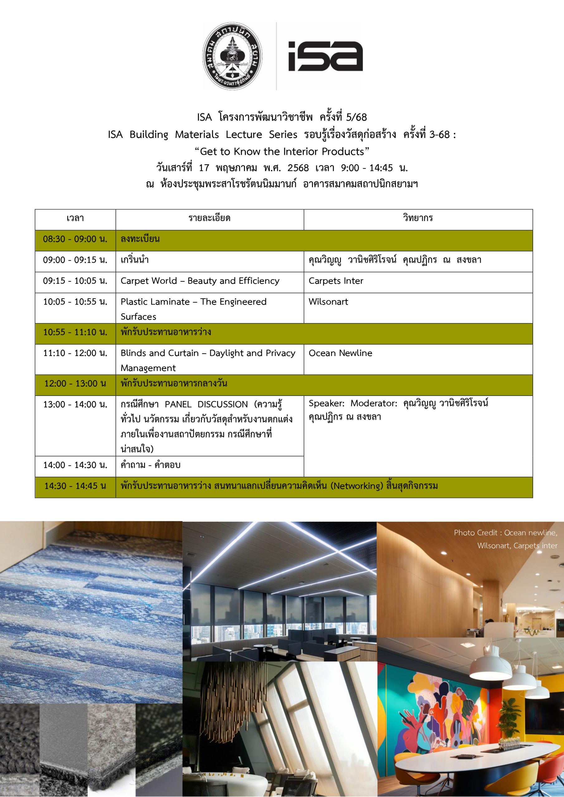 ISA โครงการพัฒนาวิชาชีพ ครั้งที่ 5/68 : Get To know The Interior Products