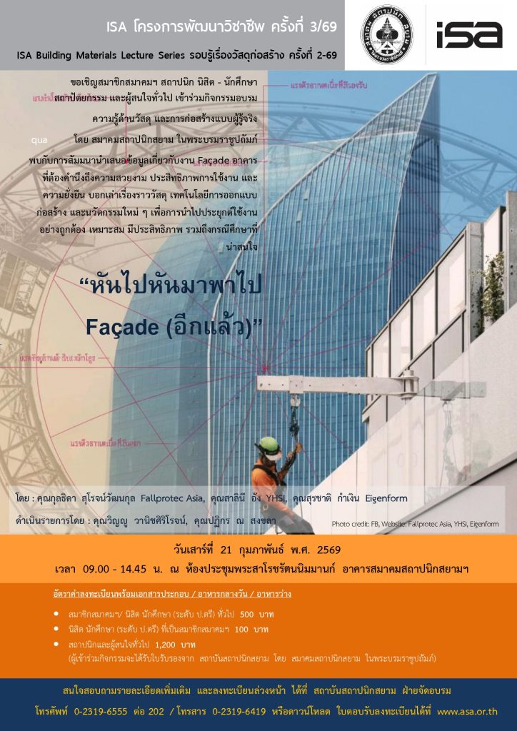 ISA โครงการพัฒนาวิชาชีพ ครั้งที่ 3/69 : หันไปหันมาพาไป Facade (อีกแล้ว) + Add to Google Calendar + iCal / Outlook export 00 days 00 hours 00 minutes 00 seconds Date Feb 21 2026 Time 09:00 - 14:45 Share this event แบบตอนรับลงทะเบียน