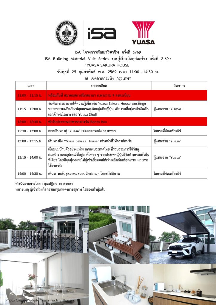 ISA โครงการพัฒนาวิชาชีพ ครั้งที่ 5/69 : “ VISIT SAKURA HOUSE ” + Add to Google Calendar + iCal / Outlook export 00 days 00 hours 00 minutes 00 seconds Date Feb 25 2026 Time 11:00 - 14:30 More Info Register Register Share this event