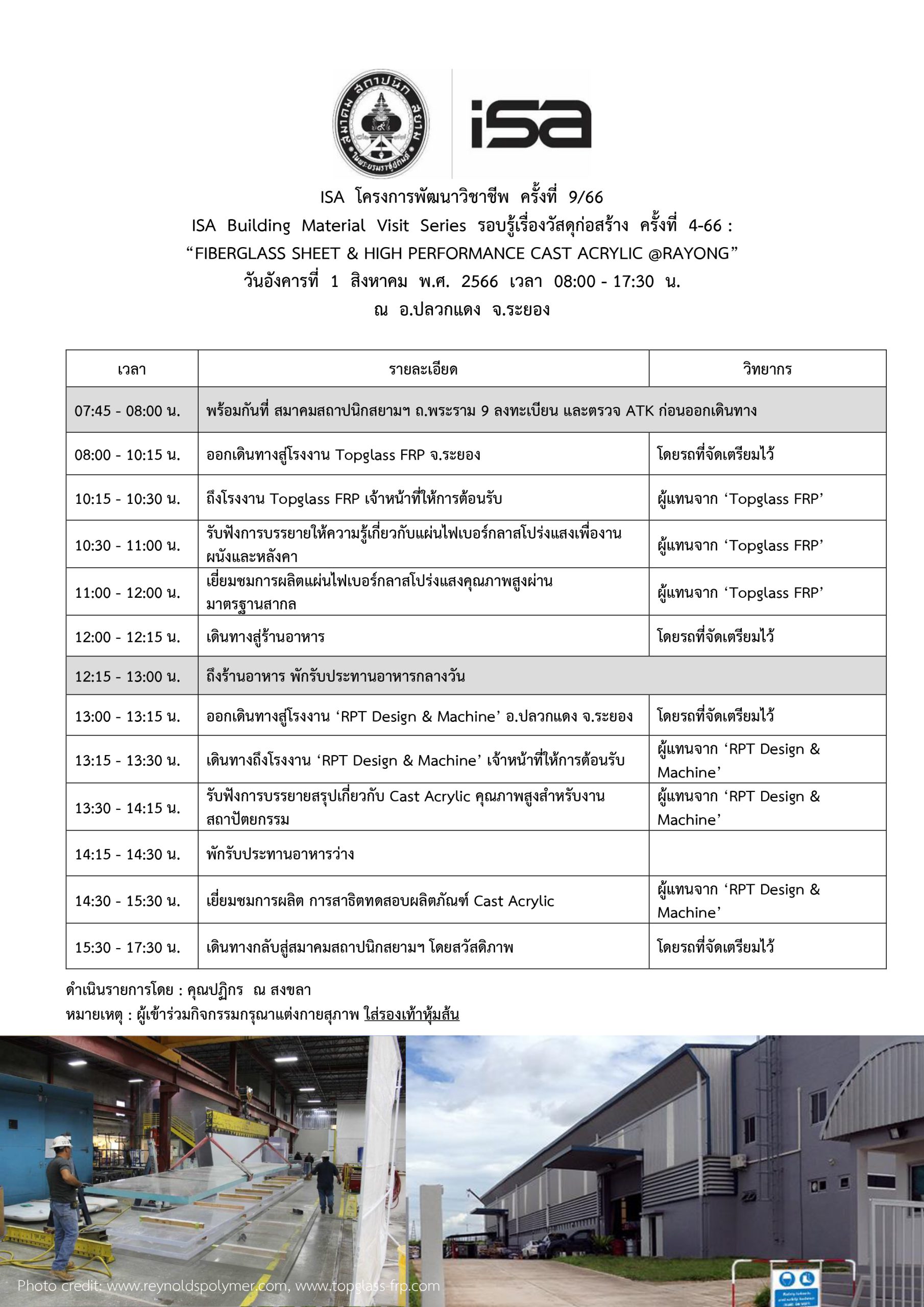 Home » ISA โครงการพัฒนาวิชาชีพ ครั้งที่ 9/66 “FIBERGLASS SHEET & HIGH PERFORMANCE CAST ACRYLIC @RAYONG” » ASA สุดสัปดาห์วิชาการครั
