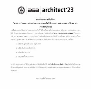 Home » ประกาศผลคัดเลือกโครงการจ้างเหมา งานออกแบบระบบเรขศิลป์ นิทรรศการสมาคมสถาปนิกสยามฯ งานสถาปนิก’66 » ประกาศผลการคัดเลือก-1024×1004
