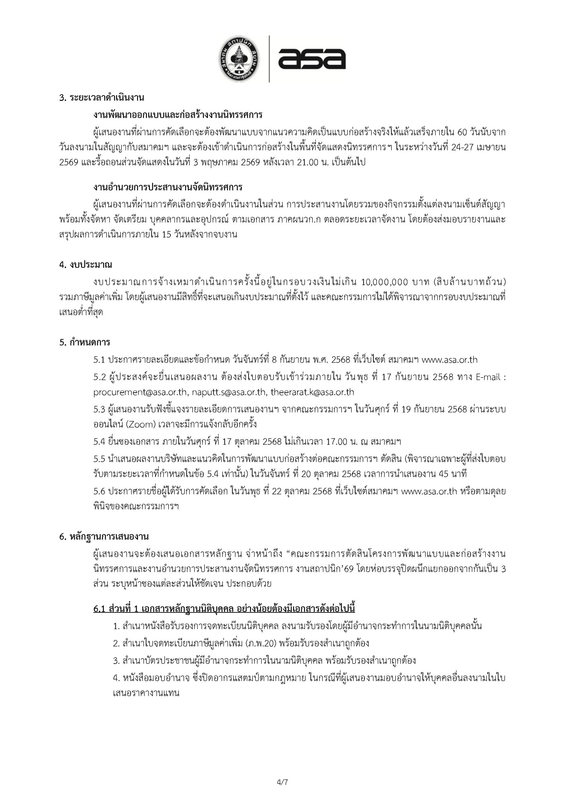 ประกาศจัดจ้างโครงการพัฒนาแบบและก่อสร้างงานนิทรรศการและงานอำนวยการประสานงานจัดนิทรรศการ งานสถาปนิก’69