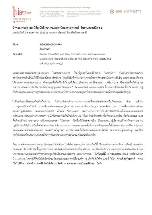 นิทรรศการผลงาน นิสิต-นักศึกษา คณะสถาปัตยกรรมศาสตร์ งานสถาปนิก’61