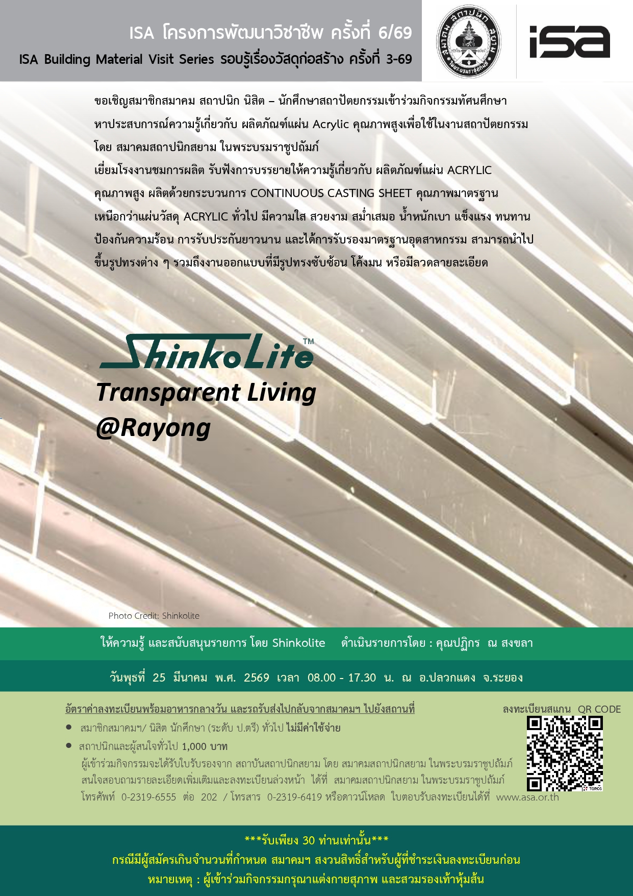 ISA โครงการพัฒนาวิชาชีพ ครั้งที่ 6/69 : Shinkolite Transparent Living @Rayong