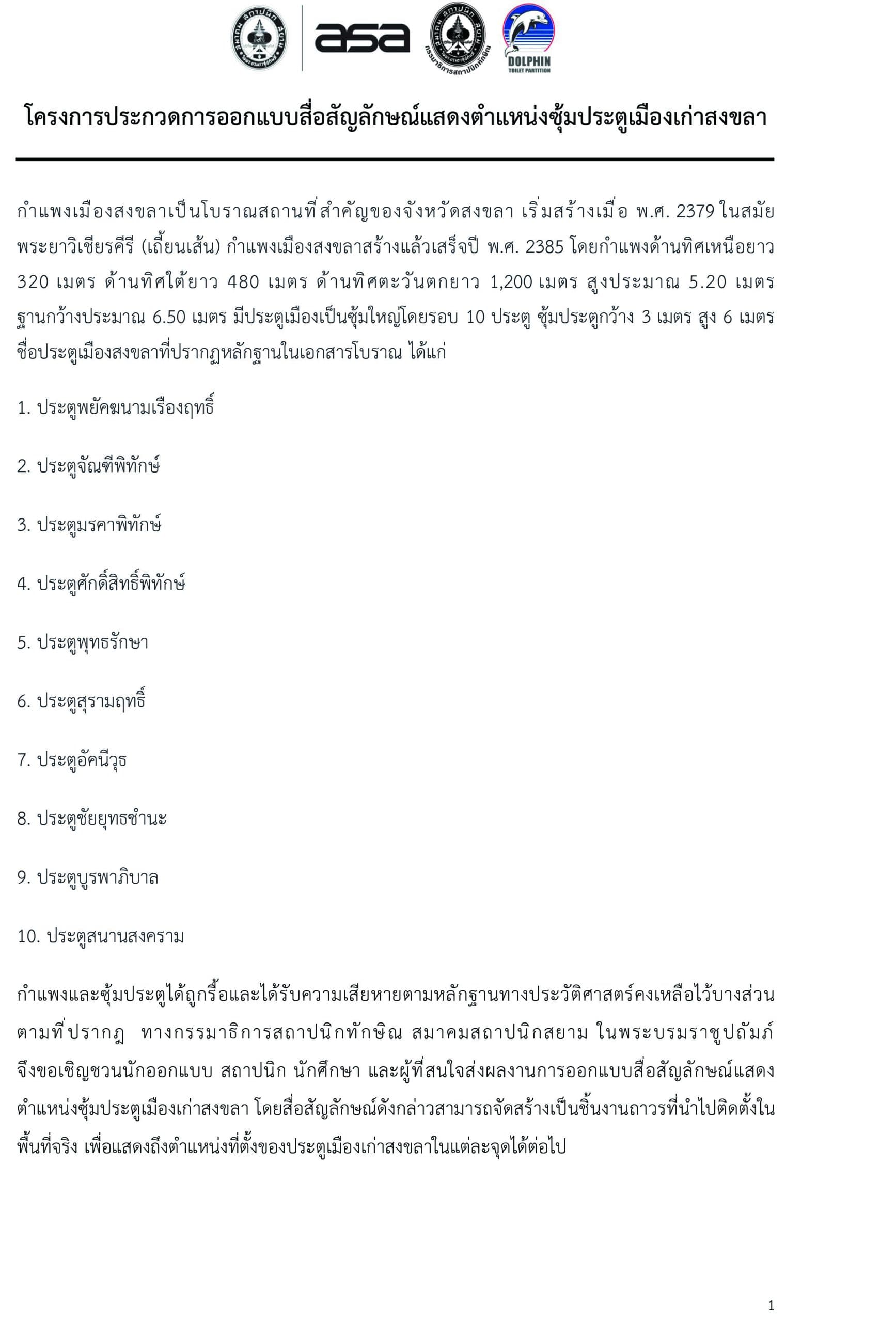 ร่วมส่งผลงานเข้าร่วมการประกวดการออกแบบสื่อสัญลักษณ์แสดงตำแหน่งซุ้มประตูเมืองเก่าสงขลา