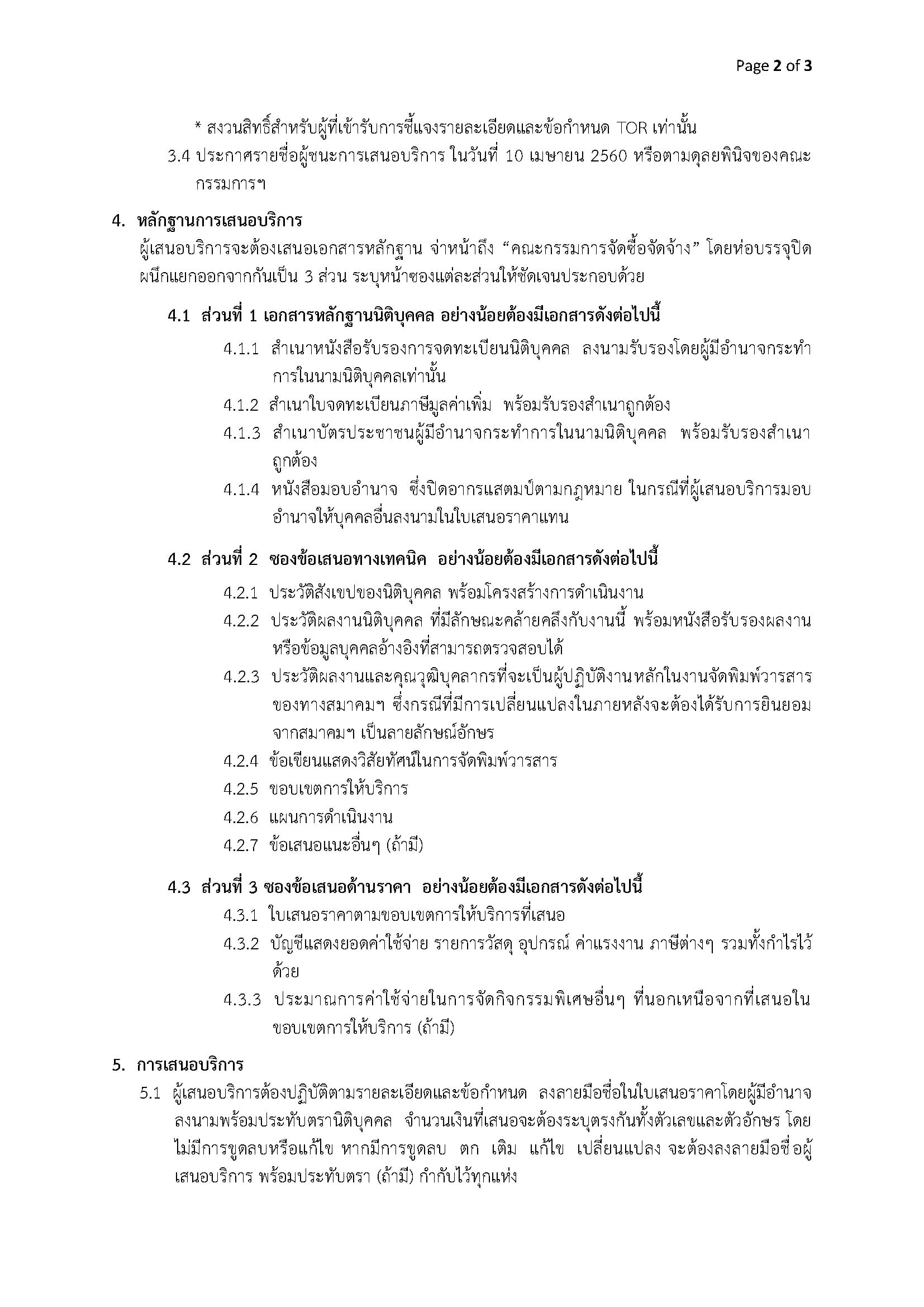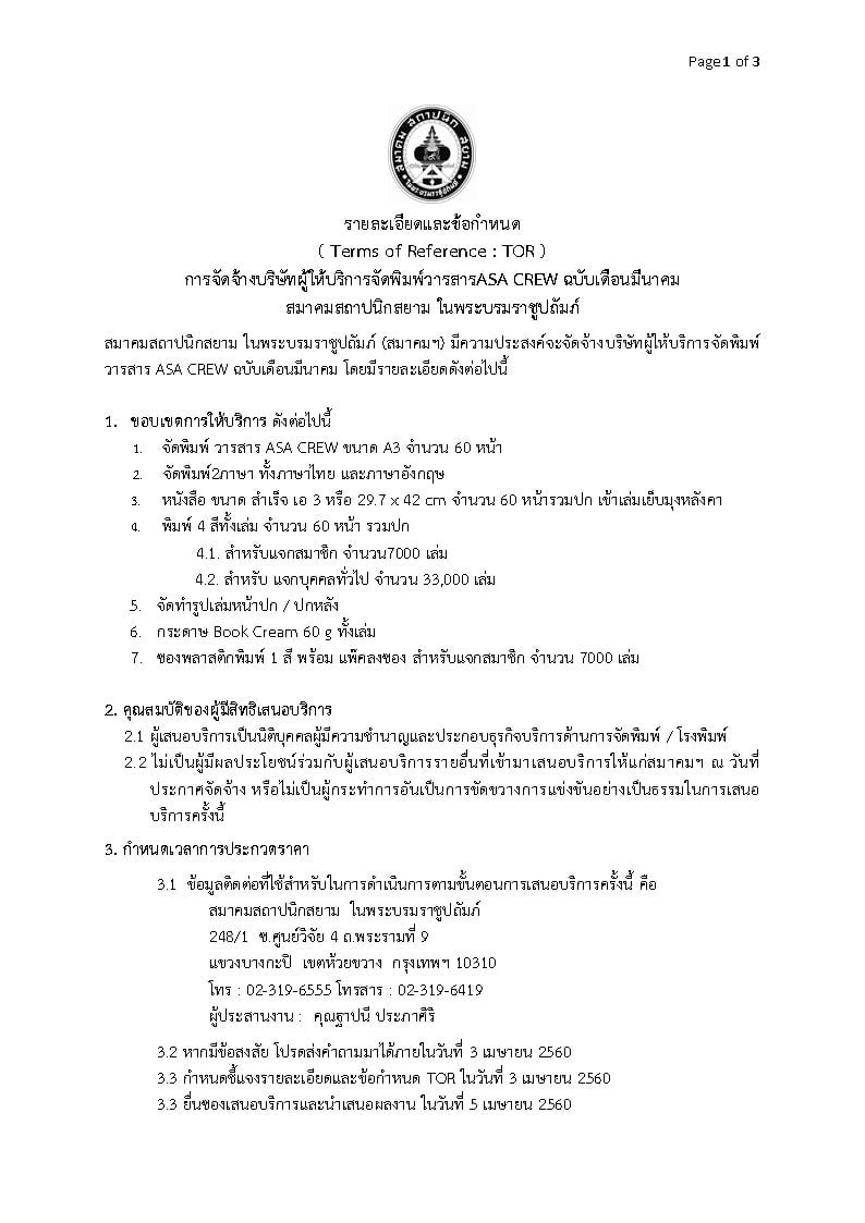 ประกาศจัดจ้างบริษัทผู้ให้บริการจัดพิมพ์วารสาร ASA CREW ฉบับเดือนมีนาคม
