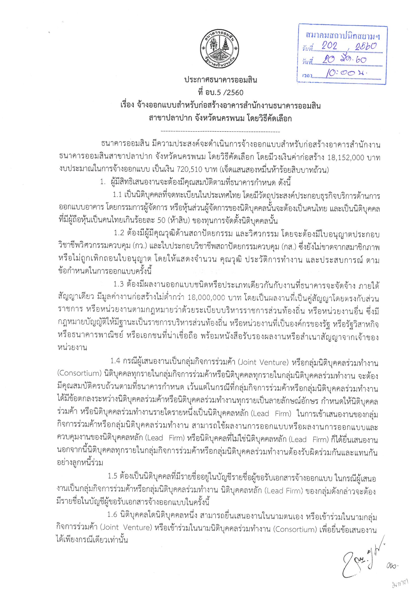 ประกาศธนาคารออมสิน เรื่อง จ้างออกแบบสำหรับก่อสร้างอาคารสำนักงานธนาคารออมสิน