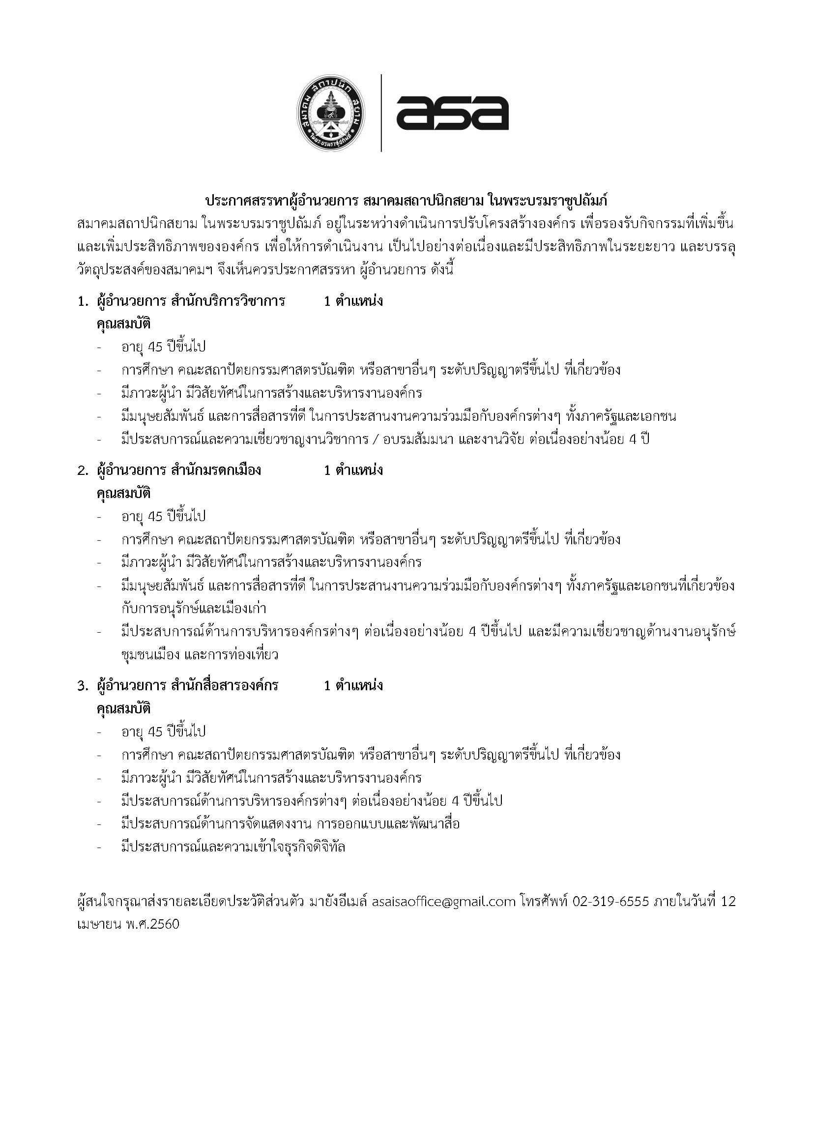 ประกาศสรรหาผู้อำนวยการ สมาคมสถาปนิกสยาม ในพระบรมราชูปถัมภ์