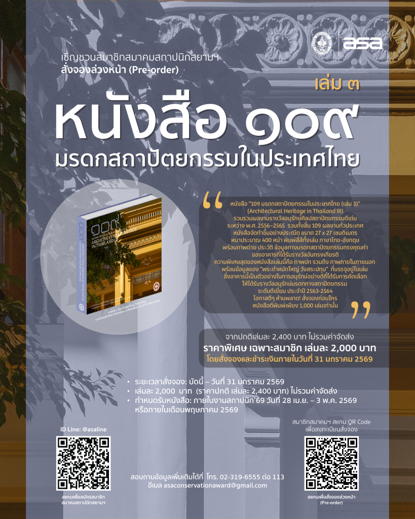 เชิญชวนสมาชิกสมาคมสถาปนิกสยามฯ สั่งจอง หนังสือ “๑๐๙ มรดกสถาปัตยกรรมในประเทศไทย เล่ม 3”