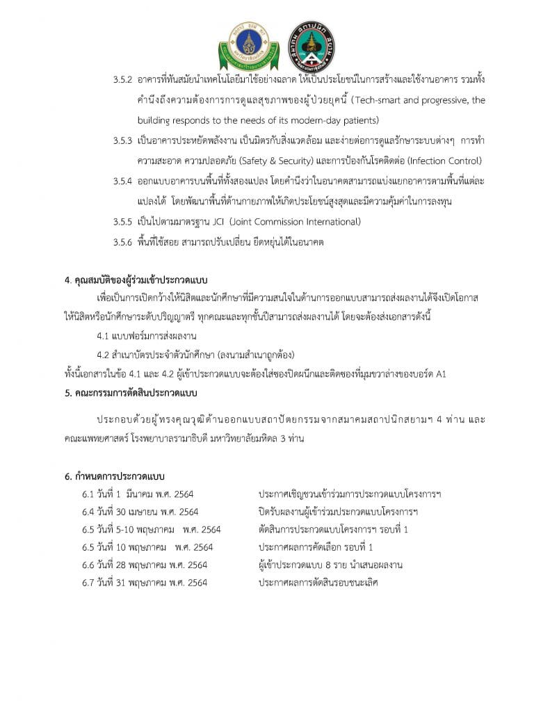 20-25 ตุลาคม 2564 ตัดสินการประกวดแบบโครงการ รอบที่ 1