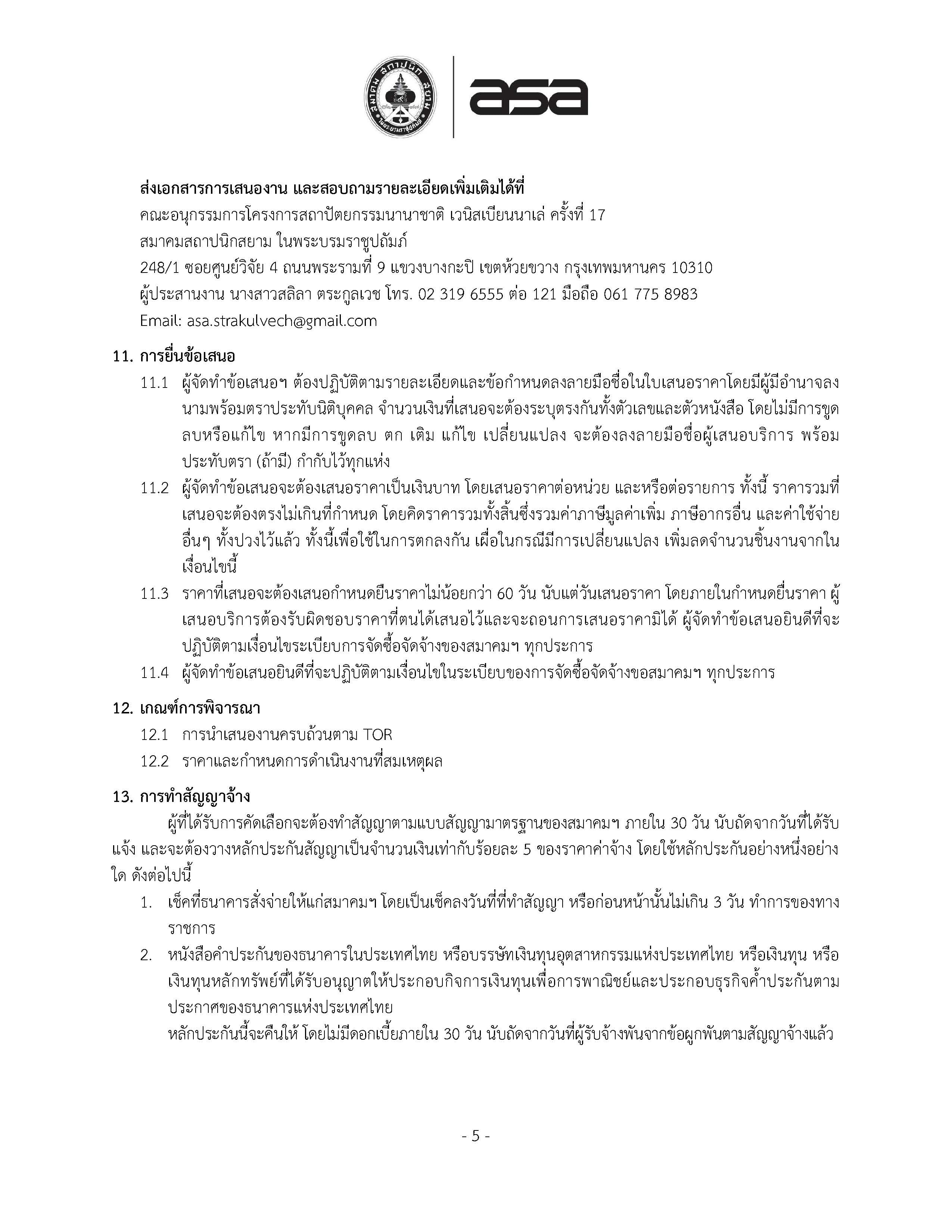 การจ้างขนส่งผลงานสถาปัตยกรรมพร้อมบรรจุหีบห่อ โครงการนิทรรศการสถาปัตยกรรมนานาชาติ เวนิสเบียนนาเล่ ครั้งที่ 17
