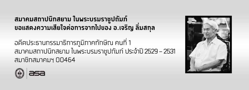 สมาคมสถาปนิกสยาม ในพระบรมราชูปถัมภ์ ขอแสดงความเสียใจต่อการจากไปของ อ.เจริญ ลิ่มสกุล