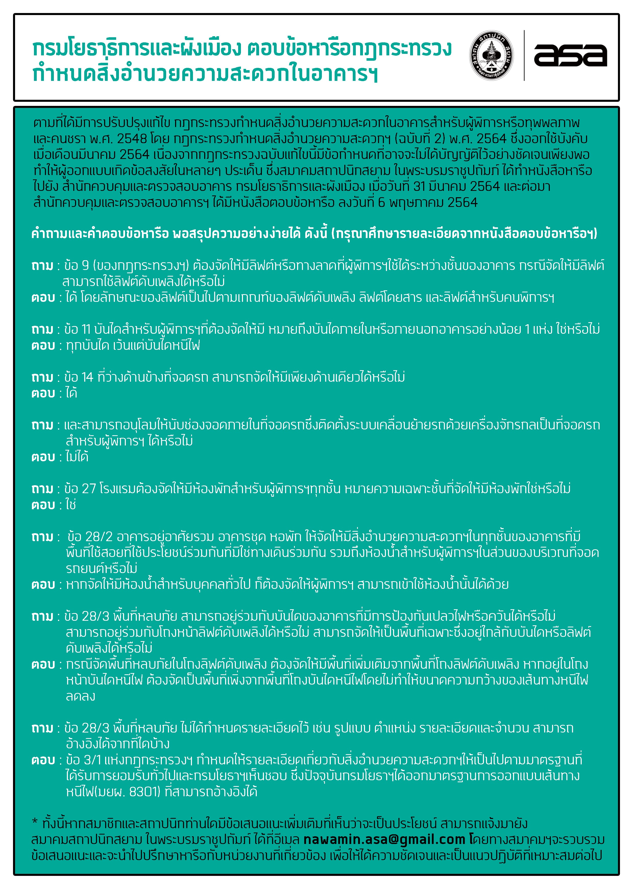 กรมโยธาฯตอบข้อหารือกฎกระทรวงกำหนดสิ่งอำนวยความสะดวกในอาคารฯ
