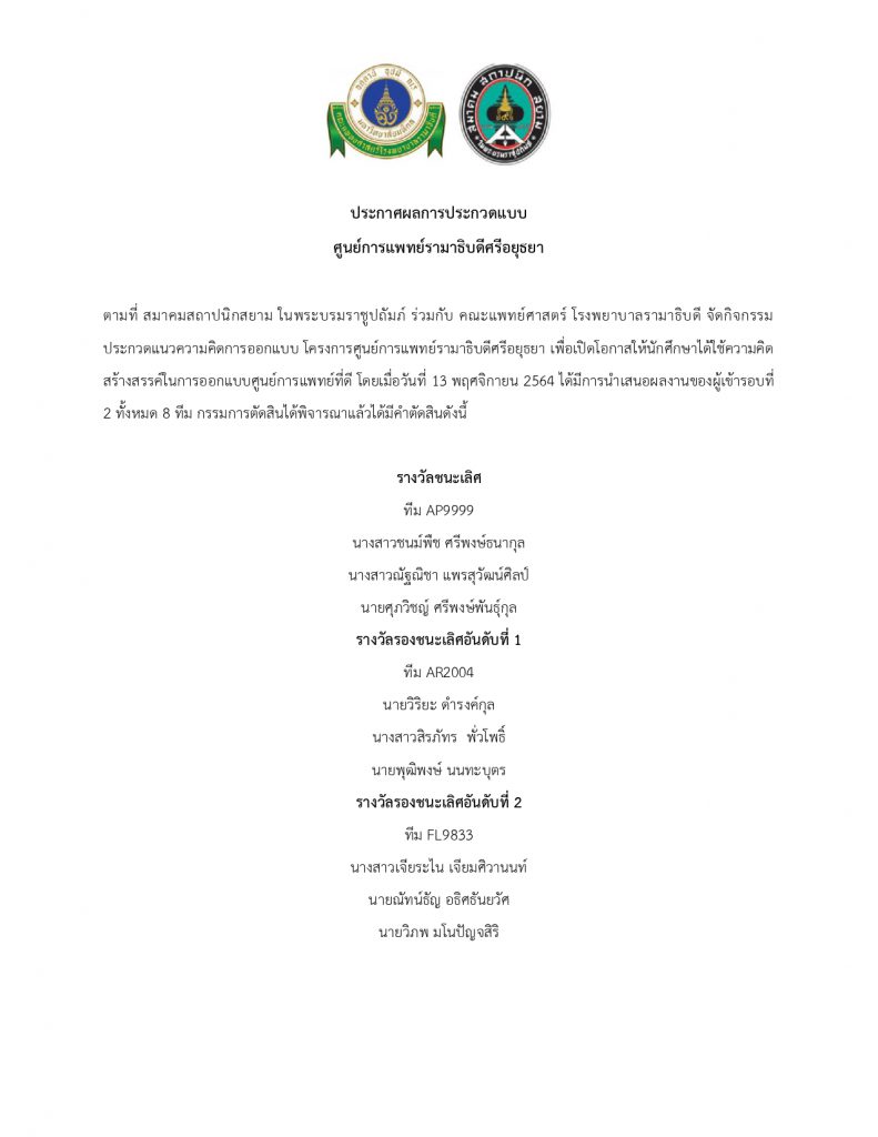 ประกาศผลการประกวดแบบ ศูนย์การแพทย์รามาธิบดีศรีอยุธยา (ประเภทนักศึกษา)