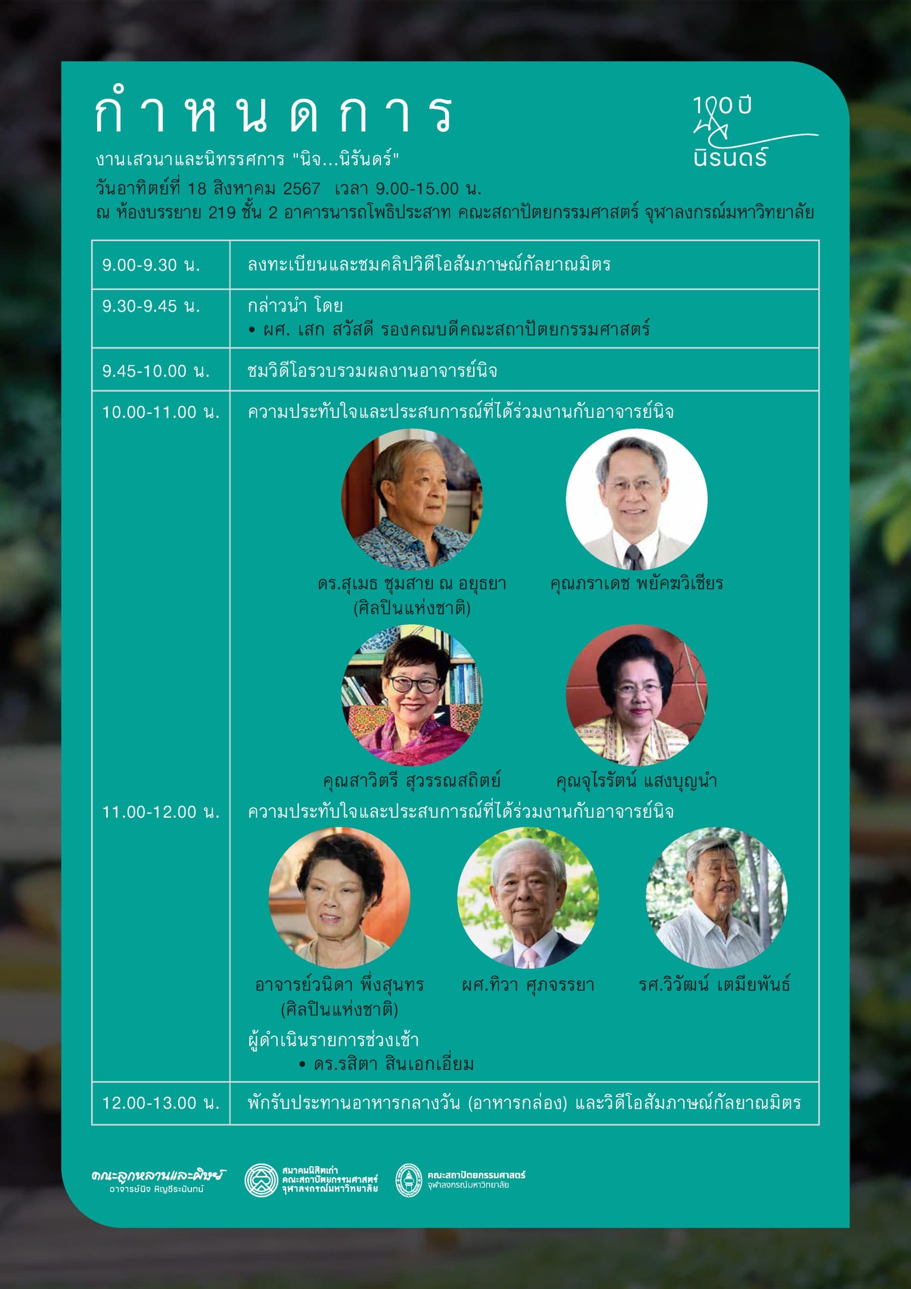 100 ปี นิจ นิรันดร์ : งานเสวนาและนิทรรศการ อ.นิจ หิญชีระนันทร์