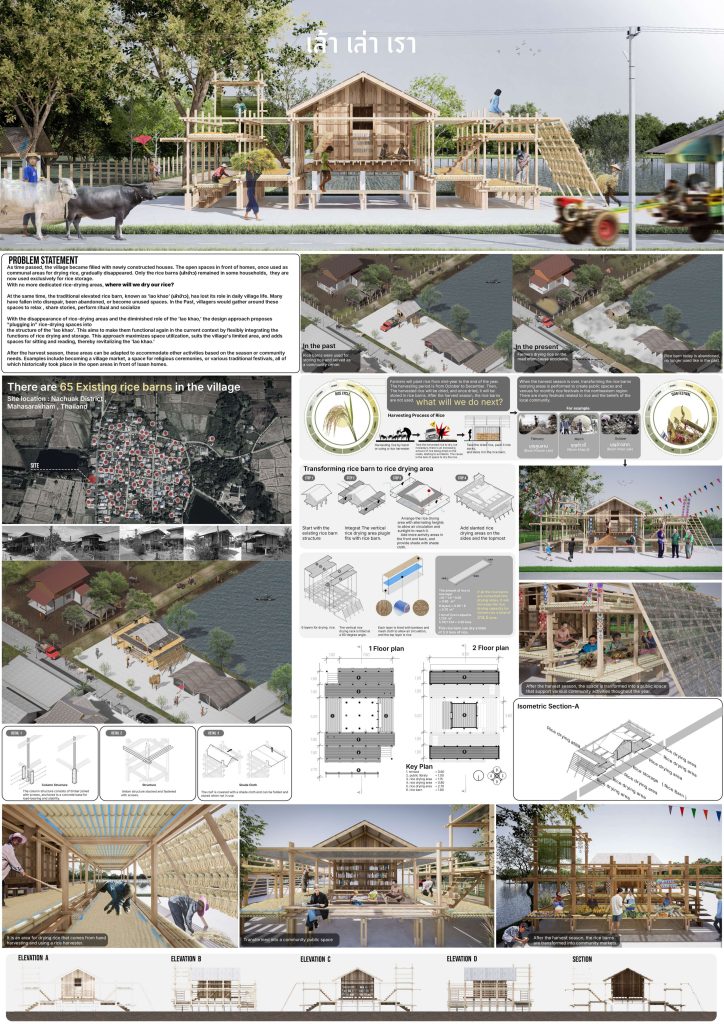 สมาคมสถาปนิกสยาม ในพระบรมราชูปถัมภ์ ขอแสดงความยินดีกับ นายทักษิณ จุปะมะนัย นักศึกษาชั้นปีที่ 5 คณะสถาปัตยกรรมศาสตร์ ผังเมืองและนฤมิตศิลป์ มหาวิทยาลัยมหาสารคาม ที่ได้รับการเสนอชื่อเป็น Finalist ในโครงการ ARCASIA Students’ Design Competition 2025 (SDC 2025) กับผลงาน “Let the Rice Barn Tell Our Story” ซึ่งจัดขึ้นภายในงาน The 21st Asian Congress of Architects (ACA-21) ระหว่างวันที่ 8–12 กันยายน 2568 ณ เมืองอินชอน สาธารณรัฐเกาหลี