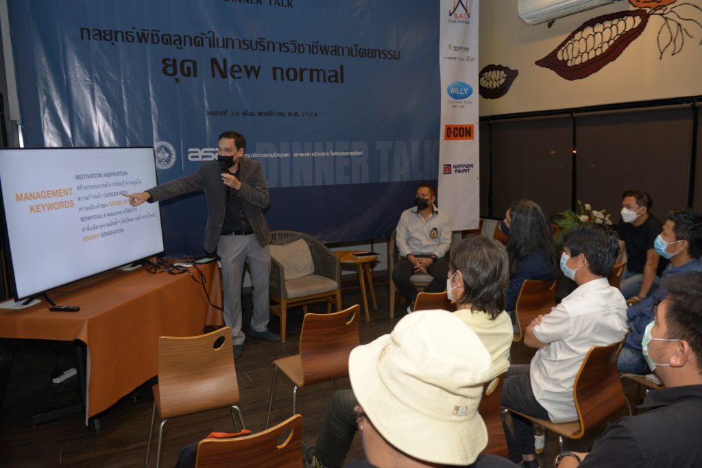เมื่อวันเสาร์ที่ 20 พฤศจิกายน 2564 คุณชนะ สัมพลัง นายกสมาคมสถาปนิกสยาม ในพระบรมราชูปถัมภ์ เป็นวิทยากรบรรยายในงาน DINNER TALK ถึงหลักการบริหารงานสำนักงานสถาปนิก เพื่อความยั่งยืนและพัฒนาการให้บริการอย่างมีประสิทธิภาพ ณ ร้าน Chockolate Factory จ.ชลบุรี และมีคุณรุ่งโรจน์ อ่วมแก้ว อุปนายกฝ่ายภูมิภาค คุณปราการ ชุณหพงษ์ ประธานกรรมาธิการสถาปนิกล้านนา คุณชนาธิป มานิจสิน อนุกรรมการสถาบันสถาปนิกสยามเป็นผู้แทนจากสมาคมฯเข้าร่วมงานด้วย โดยงานดังกล่าวจัดโดยกรรมาธิการสถาปนิกบูรพา ซึ่งมีคุณคมกฤต พานนสถิตย์ เป็นประธาน จึงทำให้งานนี้ประสบความสำเร็จและมีสมาชิกสถาปนิกบูรพา รวมถึงผู้สนใจเข้าร่วมงานเป็นจำนวนมาก