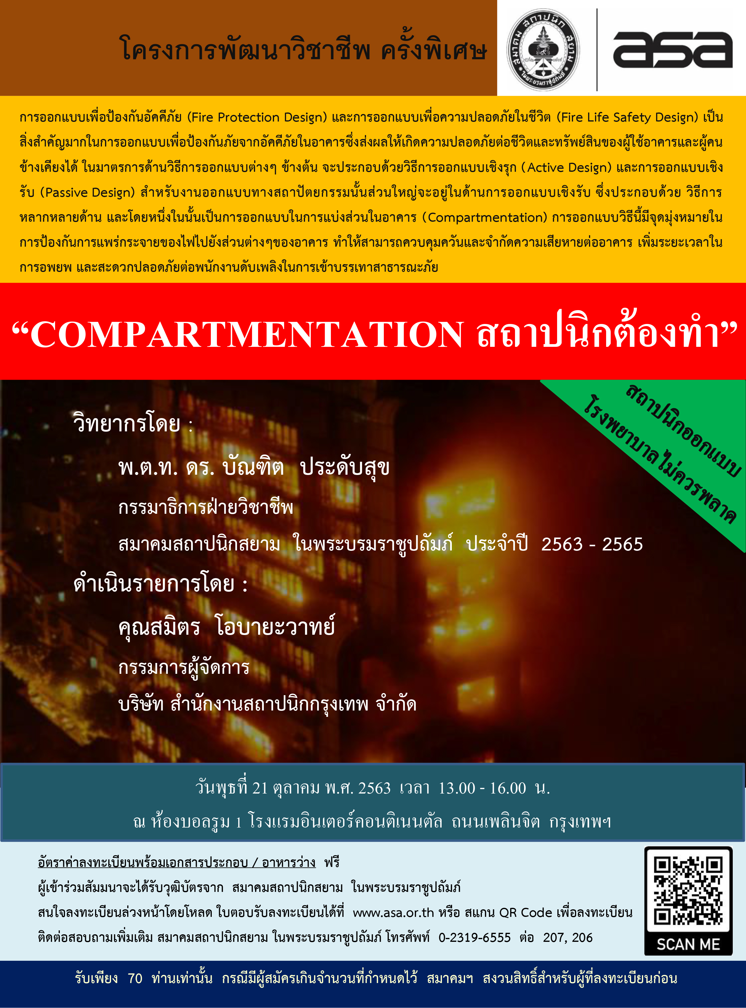 21 ต.ค.63 | โครงการพัฒนาวิชาชีพ ครั้งพิเศษ “COMPARTMENTATION สถาปนิกต้องทำ”