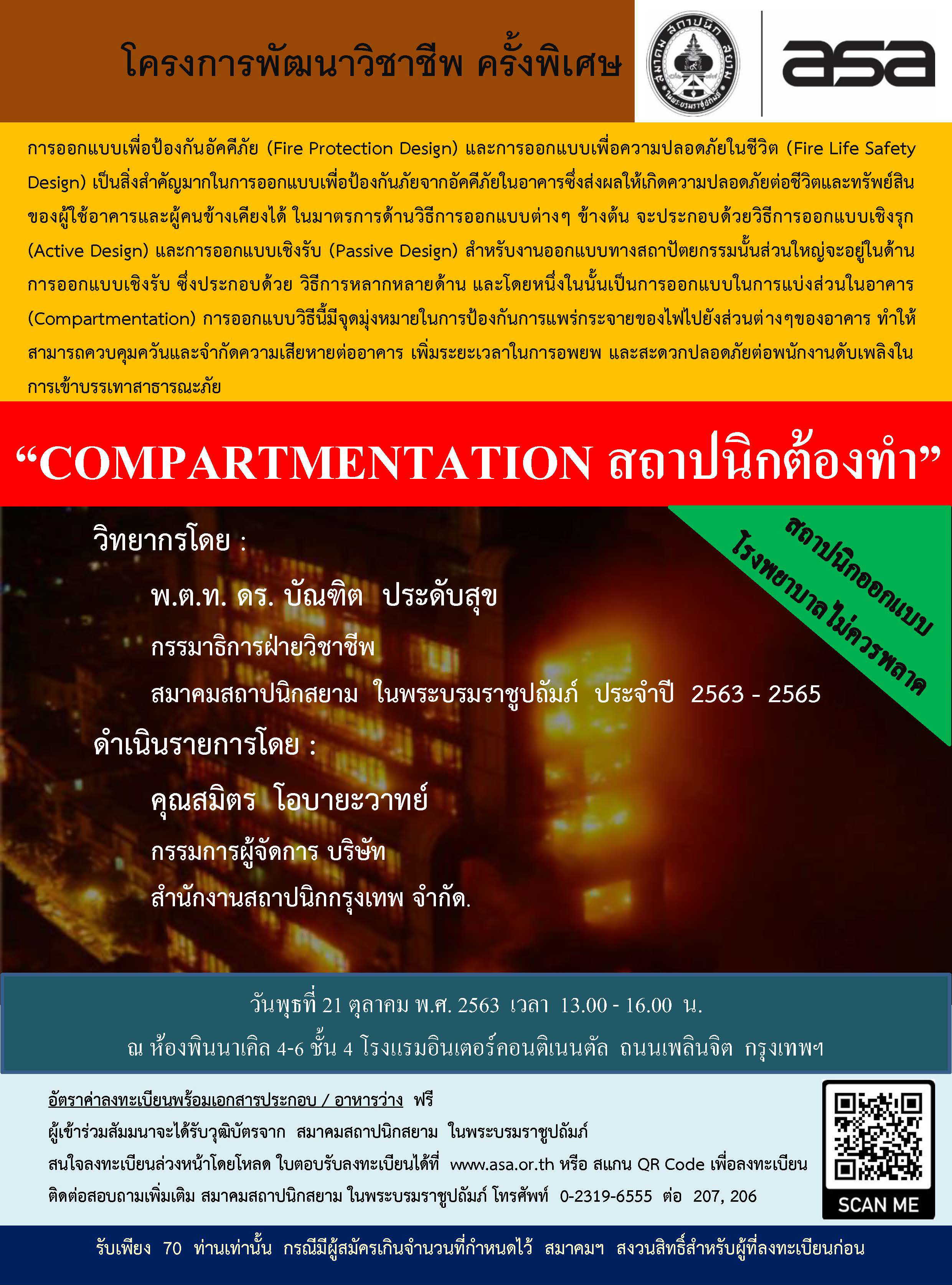 21 ต.ค.63 | โครงการพัฒนาวิชาชีพ ครั้งพิเศษ “COMPARTMENTATION สถาปนิกต้องทำ”