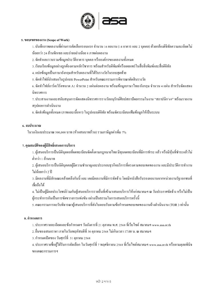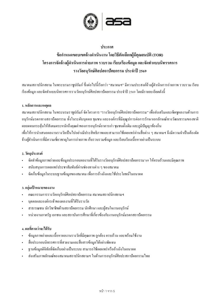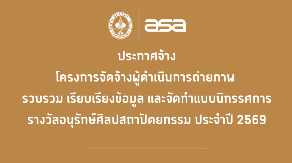 Home » News » ประกาศจ้าง โครงการจัดจ้างผู้ดำเนินการถ่ายภาพ รวบรวม เรียบเรียงข้อมูล และจัดทำแบบนิทรรศการ รางวัลอนุรักษ์ศิลปสถาปัตยกรรม ประจำปี 2569